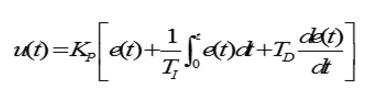圖3 微(wei)分控制器曲線 微(wei)分(fen)(fen)(fen)反(fan)應(ying)了偏(pian)(pian)差(cha)信號的(de)(de)(de)(de)變(bian)化(hua)規律,或者(zhe)說是變(bian)化(hua)趨(qu)勢,偏(pian)(pian)差(cha)的(de)(de)(de)(de)微(wei)分(fen)(fen)(fen)實(shi)際偏(pian)(pian)差(cha)的(de)(de)(de)(de)變(bian)化(hua)速率,變(bian)化(hua)越(yue)快(kuai),其微(wei)分(fen)(fen)(fen)絕(jue)對值越(yue)大(da)(da)。偏(pian)(pian)差(cha)增(zeng)大(da)(da)時,其微(wei)分(fen)(fen)(fen)為(wei)正;偏(pian)(pian)差(cha)減小時,其微(wei)分(fen)(fen)(fen)為(wei)負(fu)(fu)。控(kong)制(zhi)器(qi)輸出量(liang)的(de)(de)(de)(de)微(wei)分(fen)(fen)(fen)部分(fen)(fen)(fen)與誤差(cha)的(de)(de)(de)(de)微(wei)分(fen)(fen)(fen)成(cheng)正比,反(fan)映了被控(kong)量(liang)變(bian)化(hua)的(de)(de)(de)(de)趨(qu)勢。根據(ju)偏(pian)(pian)差(cha)信號的(de)(de)(de)(de)變(bian)化(hua)趨(qu)勢來進(jin)行(xing)超前(qian)調(diao)節(jie)(jie),從而增(zeng)加(jia)了系統的(de)(de)(de)(de)快(kuai)速性(xing)(xing)。Td值越(yue)大(da)(da),超前(qian)控(kong)制(zhi)作用就會越(yue)明顯,可(ke)(ke)以在做到提前(qian)控(kong)制(zhi)。比例僅僅是偏(pian)(pian)差(cha)的(de)(de)(de)(de)放大(da)(da)增(zeng)幅,表示當前(qian)調(diao)節(jie)(jie)參數(shu),微(wei)分(fen)(fen)(fen)是預測(ce)偏(pian)(pian)差(cha)的(de)(de)(de)(de)變(bian)化(hua),相當于提前(qian)加(jia)入(ru)了控(kong)制(zhi)數(shu)據(ju)。在比例微(wei)分(fen)(fen)(fen)調(diao)節(jie)(jie)器(qi)中,能夠(gou)提前(qian)控(kong)制(zhi)偏(pian)(pian)差(cha),也(ye)有可(ke)(ke)能出現(xian)負(fu)(fu)值,避免了惰性(xing)(xing)系統的(de)(de)(de)(de)超調(diao)現(xian)象。 一、PID算法內容(rong) 2.1 PID算法選擇 PID算法(fa)中有比例積分調(diao)節(jie)(PI),比例微(wei)分調(diao)節(jie)器(PD),可(ke)根(gen)據系統要求進(jin)行選擇,通(tong)常(chang)為了改善調(diao)節(jie)品(pin)質,往往把比例、積分、微(wei)分三種作(zuo)用組合起來,形成(cheng)PID調(diao)節(jie)器。理想的PID微(wei)分方程(cheng)為: