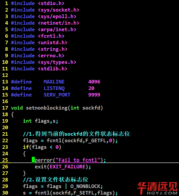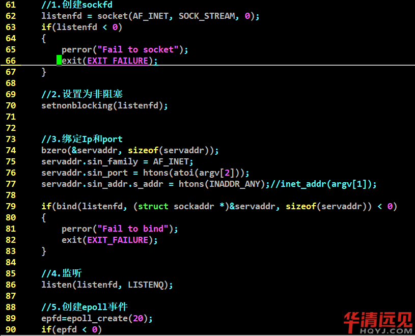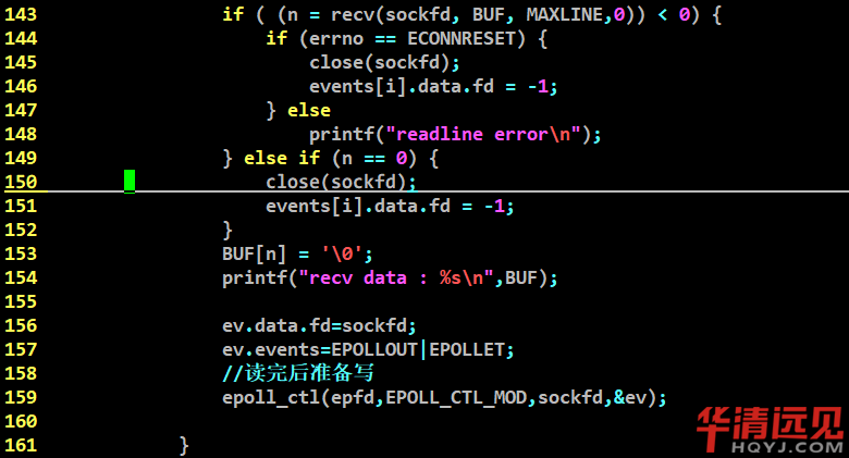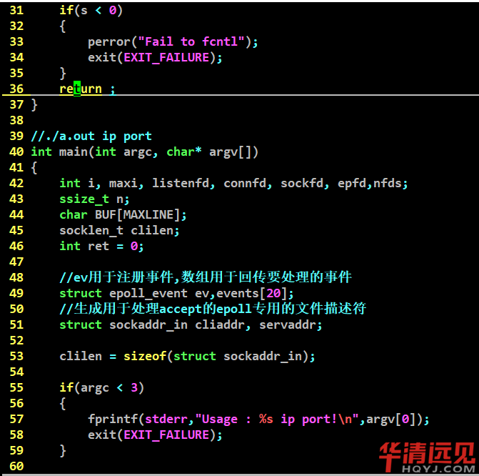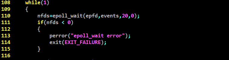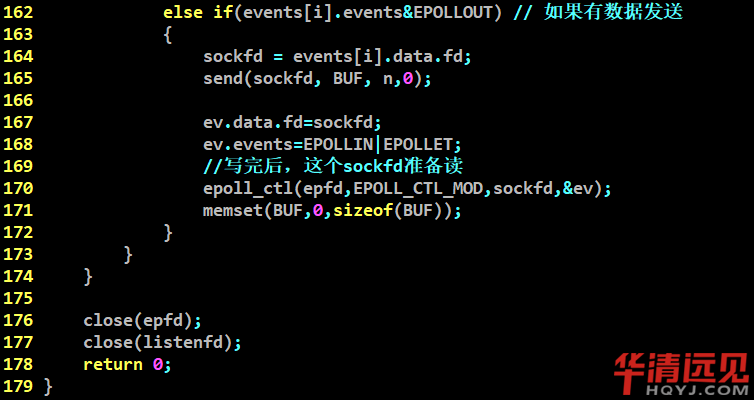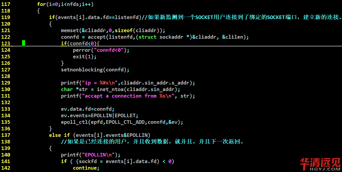 總結: (1)我們我們調用epoll_wait()函數的時候,系統創建一個epoll對(dui)象,每(mei)個對(dui)象都(dou)有(you)一個 叫(jiao)做eventpoll類型的(de)結構體與之對(dui)應,該(gai)結構體中主要(yao)有兩個主要(yao)的(de)成員,一個是 rbn,代表將要通過(guo)epoll_ctl向epll對象中(zhong)添加的事(shi)件(jian)。這些事(shi)情(qing)都是掛載在紅黑樹中(zhong)。 一個是rdlist,里面存放的(de)是將要發生的(de)事件 (2)當(dang)我們使用epoll_ctrl()函數(shu)的時候,就是向epoll對象中添加(jia),刪除,修(xiu)改感興(xing)趣的事件(jian) (3) epoll_wait()系(xi)統。通過此調用收集(ji)在(zai)epoll監控中已經(jing)發生(sheng)的(de)(de)事件。當(dang)監控的(de)(de)事件狀態發生(sheng)改變的(de)(de)時候,我們會(hui)調用會(hui)調用函數把epitem加入到rdlist中去。 一. Epoll的API函(han)數接口 3.1 事件(jian)的創建---epoll_create(); int epoll_create(int size); int epoll_create1(int flags); 功能:poll_create()創建(jian)(jian)一個(ge)epoll的(de)事例,通知內核需(xu)要監聽(ting)size個(ge)fd。size指的(de)并不是(shi)(shi)最大的(de)后備存儲(chu)設備,而是(shi)(shi)衡量內核內部結構大小的(de)一個(ge)提示。當創建(jian)(jian)成功后,會占用(yong)一個(ge)fd,所以(yi)記(ji)得在使用(yong)完之后調用(yong)close(),否則(ze)fd可能會被耗盡。 Note:自從Linux2.6.8版本以(yi)后,size值其實是(shi)沒什么(me)用的(de),不過(guo)要大于0,因為(wei)內核可以(yi)動態(tai)的(de)分配大小(xiao),所以(yi)不需(xu)要size這個提示了。 其次:epoll_create1()函(han)數,其實它和epoll_create差(cha)不多,不同的是epoll_create1函(han)參(can)數flag: · 當flag是0時,表示和epoll_create函數完全一樣,不需(xu)要size的提示了; · 當flag = EPOLL_CLOEXEC,創(chuang)建(jian)的epfd會設置FD_CLOEXEC; · 當flag = EPOLL_NONBLOCK,創建的(de)epfd會(hui)設(she)置為非阻塞。 一般用(yong)法都是使用(yong)EPOLL_CLOEXEC。 Note:關(guan)于FD_CLOEXEC,它(ta)是fd的一個標識說(shuo)明(ming),用來設置文件close-on-exec狀態的。當close-on-exec狀態為(wei)0時(shi)(shi),調用exec時(shi)(shi),fd不會被關(guan)閉(bi);狀態非(fei)零時(shi)(shi)則(ze)會被關(guan)閉(bi),這樣做(zuo)可以防(fang)止(zhi)fd泄露給執行(xing)exec后的進程。 返(fan)回值:成功返(fan)回一個非負的文件(jian)描述符。 例如: int epfd = epoll_create(20); //注:20為隨機(ji)寫(xie)的一(yi)個值,大(da)于0即可(ke)。 或 int epfd = epoll_create1(0); 3.1 事件(jian)的注(zhu)冊---epoll_ctl(); int epoll_ctl(int epfd, int op, int fd, struct epoll_event *event); 功(gong)能:epoll的(de)事(shi)件(jian)(jian)注冊函數(shu),epoll的(de)事(shi)件(jian)(jian)注冊函數(shu),它不(bu)同于select()是(shi)在(zai)監(jian)聽事(shi)件(jian)(jian)時告訴內核(he)要監(jian)聽什么類(lei)型(xing)的(de)事(shi)件(jian)(jian),而是(shi)在(zai)這里先(xian)注冊要監(jian)聽的(de)事(shi)件(jian)(jian)類(lei)型(xing)。 參數: @epfd epoll_create()函數(shu)的返回值 @op 表(biao)示參數的動(dong)作,常用(yong)以下(xia)宏: EPOLL_CTL_ADD:注(zhu)冊(ce)新(xin)的fd到epfd中; EPOLL_CTL_MOD:修改(gai)已(yi)經注冊的fd的監(jian)聽事(shi)件; EPOLL_CTL_DEL:從epfd中(zhong)刪(shan)除一(yi)個fd; @fd 表示(shi)我(wo)們需(xu)要監聽的文件描述(shu)符 @event 表示告訴(su)內核,我們需(xu)要(yao)監聽什(shen)么(me)事件。 結構體如下: typedef union epoll_data { void *ptr; int fd; //保存(cun)我(wo)們使(shi)用(yong)的(de)sockfd uint32_t u32; uint64_t u64; } epoll_data_t; struct epoll_event { uint32_t events; /* Epoll events */ epoll_data_t data; /* User data variable */ }; events參數是一(yi)個枚舉的集合,可以(yi)用(yong)” | “來增加事件類型,枚舉如下: · EPOLLIN :表示對應(ying)的文(wen)件(jian)描述符可以讀(包括對端SOCKET正常關閉); · EPOLLOUT:表示對應的(de)文(wen)件描述符可以寫; · EPOLLPRI:表(biao)示對應的文(wen)件(jian)描述符有緊急的數(shu)據可讀(這里應該(gai)表(biao)示有帶外(wai)數(shu)據到(dao)來(lai)); · EPOLLERR:表示對(dui)應的文(wen)件(jian)描述(shu)符發生錯誤(wu); · EPOLLHUP:表示對應的文件描述符(fu)被掛(gua)斷; · EPOLLET: 將EPOLL設為邊緣觸發(Edge Triggered)模式,這是(shi)相對于(yu)水(shui)平觸發(Level Triggered)來(lai)說(shuo)的; · EPOLLONESHOT:只監聽(ting)一次(ci)(ci)事(shi)件,當(dang)監聽(ting)完這(zhe)次(ci)(ci)事(shi)件之后,如果(guo)還需要繼續監聽(ting)這(zhe)個socket的話,需要再次(ci)(ci)把這(zhe)個socket加(jia)入(ru)到(dao)EPOLL隊(dui)列里 返回(hui)值:成功返回(hui)0,失敗(bai)返回(hui)-1. 3.2等待事件---epoll_wait(); int epoll_wait(int epfd, struct epoll_event *events,int maxevents, int timeout); 功能:收集在epoll監(jian)控的事件中已經發送(song)的事件。 參數: @epfd epoll_create()函(han)數的返回值(zhi) @events 已經分配(pei)好的epoll_event結構(gou)體數(shu)組(zu),epoll會把將發生(sheng)的事情(qing)存放(fang)到events中。 @maxevents 告訴內核events有多(duo)大(da)。必須大(da)于0 @timeout 超時時間(jian) -1 表示epoll將(jiang)無限制(zhi)的(de)等待(dai)下去 0 立即返回 >0 指定超(chao)時(shi)時(shi)間 返(fan)回(hui)值: 成功返(fan)回(hui)已(yi)經就(jiu)緒的文件描述符個數。若是(shi)設(she)置(zhi)了超(chao)時(shi)時(shi)間,在超(chao)時(shi)時(shi)間內返(fan)回(hui)0. 失敗返回-1. 五.Epoll的(de)工作(zuo)模式。 LT(level triggered)是缺省的工(gong)作方式,并且同(tong)時支 持block和no-block socket.在這種做法中,。當epoll_wait檢(jian)測到(dao)描(miao)述符事(shi)件發生并(bing)將此事(shi)件通知應(ying)(ying)用
