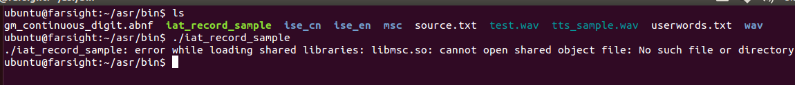 但是執行時出現error while loading shared libraries: libmsc.so的錯誤