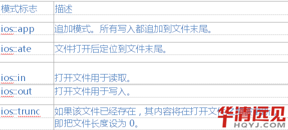 您可以(yi)(yi)把以(yi)(yi)上(shang)兩(liang)種或兩(liang)種以(yi)(yi)上(shang)的模式(shi)結合(he)使(shi)用。例如,如果您想要以(yi)(yi)寫(xie)入模式(shi)打開文件(jian),并(bing)希望(wang)截斷文件(jian),以(yi)(yi)防(fang)文件(jian)已(yi)存(cun)在,那么您可以(yi)(yi)使(shi)用下面的語法: