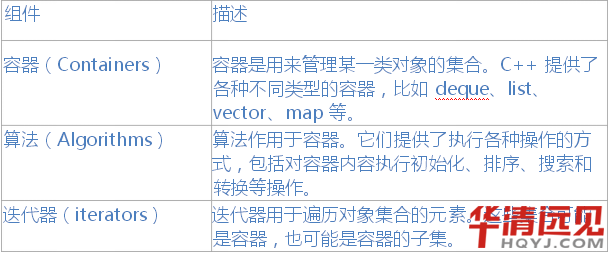 C++ STL(標(biao)準模板庫)是一套功(gong)能強大(da)的 C++ 模板類,提供(gong)了通用(yong)的模板類和函數(shu)(shu)(shu),這些(xie)模板類和函數(shu)(shu)(shu)可以實現多種流行和常用(yong)的算法和數(shu)(shu)(shu)據結(jie)構,如向量、鏈表、隊(dui)列、棧。 C++ 標(biao)準模板庫的核心包(bao)括以下三個(ge)組件: