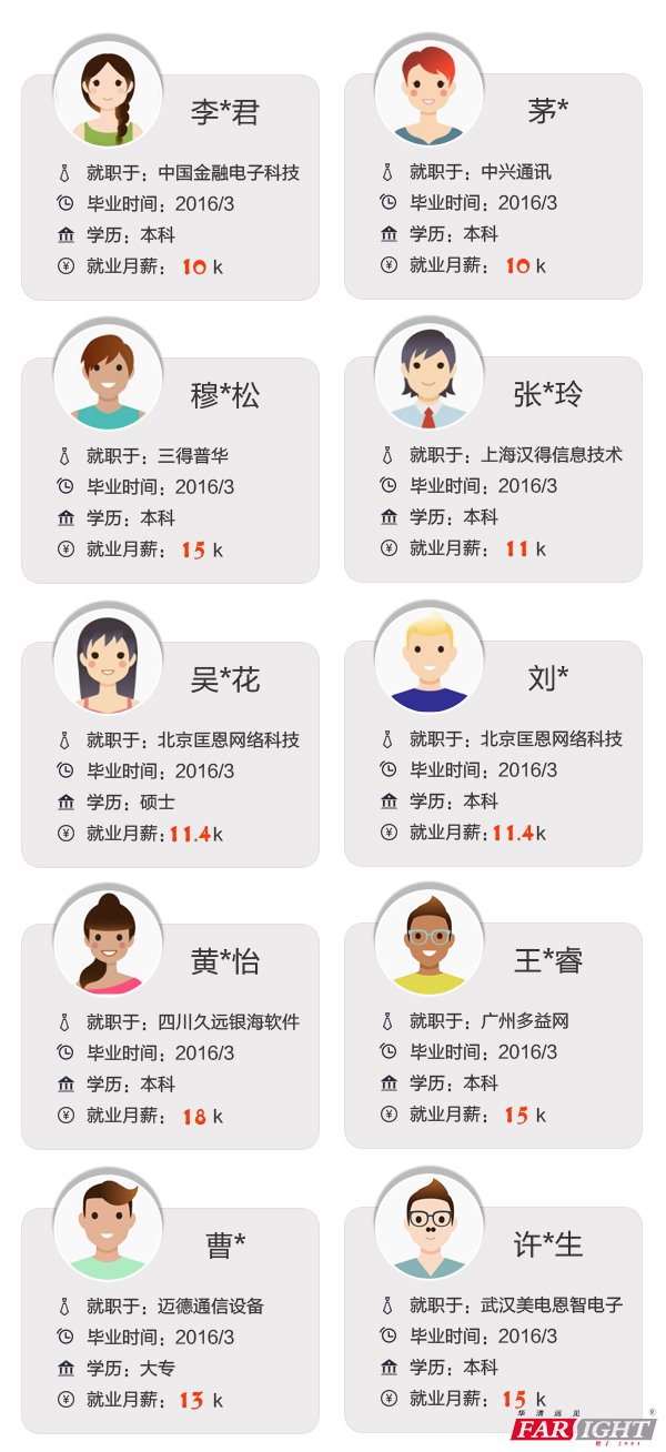|   3月就業好榜樣出爐 美女18K月薪亮瞎眼  時間:2016-04-17作(zuo)者:華清(qing)遠見(jian) 期待已久的(de)3月(yue)就(jiu)業(ye)好(hao)榜樣今天要跟各位見面(mian)了,在就(jiu)業(ye)老師辛苦的(de)工(gong)作和同學們辛勤的(de)努力下,終獲回報。在這個企業(ye)熱招的(de)季(ji)節,又有哪些(xie)大神成功(gong)上榜呢? 本期好榜樣亮點: 成都中(zhong)心(xin)美女學員(yuan)黃同學,成功入職四(si)川(chuan)久遠銀(yin)(yin)海軟(ruan)件,喜獲18K月薪!這是(shi)一家上市企業。四(si)川(chuan)久遠銀(yin)(yin)海軟(ruan)件股份(fen)有限公(gong)司(以下簡稱“銀(yin)(yin)海”)1992年起(qi)源于“兩彈一星”的搖籃—工程物理研究院,是(shi)工程物理研究院發(fa)展“軍轉(zhuan)民”事業在IT領(ling)域的重點支柱性企業。 首先了解:就(jiu)業好榜樣評選標準,符合以下(xia)倆項(xiang)的學員經由班主任(ren)推(tui)薦即(ji)刻上榜! 1.自身(shen)條件不佳(基礎差(cha)、非專業、學歷低(di))卻獲得了很好(hao)的工作 2.薪資高人一等 3.進入名企工作 4.班主任反饋該學員學習(xi)刻苦,以及同學間(jian)關系融(rong)洽、互幫(bang)互助。 那么3月華(hua)清遠見教(jiao)育科技集團入選就(jiu)(jiu)業好榜樣10人名單就(jiu)(jiu)是!