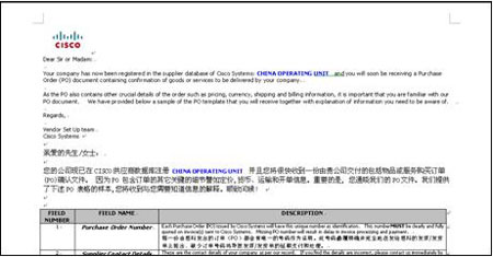 圖一 思科公司發送(song)的PO Mock Up-China文件