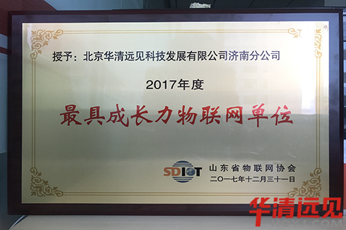 北京華清遠見科技發展有限公司榮獲“山東省2017年度物聯網產業最受關注單位”