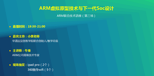 2018年6月26日,第七屆華清遠見-ARM聯合大型技術講座(第三場)線上直播圓滿結束!說起本場講座可謂是紅旗招展、人山人海,觀看直播人數達500人以上。你問為什么如此火爆?那還用說嗎,當然是咱們的主講師有魅力啦!本場講座主題為ARM虛擬原型技(ji)術(shu)與下一代Soc設計,主講人是ARM公司高級技(ji)術專家牛鋒老師。