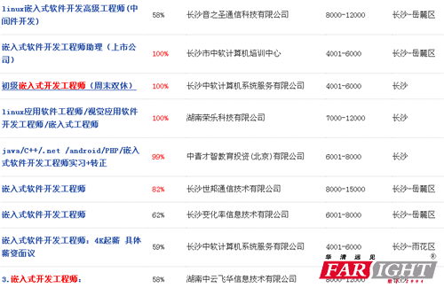 通過一些招聘網(wang)站也(ye)可以(yi)(yi)看出(chu),長沙IT行(xing)業的(de)(de)從(cong)(cong)業人(ren)員薪酬水(shui)平都很可觀(guan)!根據工(gong)作(zuo)崗位和工(gong)作(zuo)經驗的(de)(de)不同,嵌入式開發工(gong)程(cheng)(cheng)師的(de)(de)年(nian)薪從(cong)(cong)6萬至(zhi)15萬不等,移(yi)動開發(Android、VR、HTML5等)工(gong)程(cheng)(cheng)師即使是實習(xi)崗位,月(yue)薪也(ye)普遍在6000以(yi)(yi)上!有的(de)(de)甚至(zhi)達到萬元以(yi)(yi)上!此次華清遠見的(de)(de)入駐也(ye)是響(xiang)應了眾(zhong)多長沙小伙伴們的(de)(de)號召,將最優(you)質的(de)(de)課(ke)程(cheng)(cheng),最優(you)秀的(de)(de)老師送到了家門(men)口。