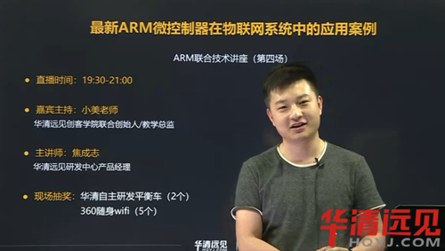 2018年6月28日,第七屆華清遠見-ARM聯合大型技術講座(最終場)正式結束。作為本屆講座的最后一場線上直播,主講師由華清遠見研發中心產品培訓經理焦成志老師壓軸出場,為我們帶來最新ARM微控制器在物聯網系統中的應用案例的演講。