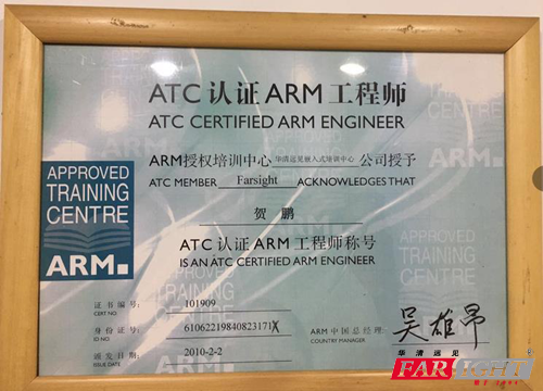 (圖為:華清(qing)遠(yuan)見被(bei)授(shou)予ARM工程師證書)