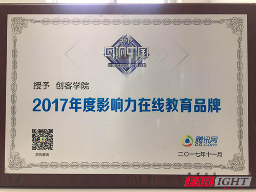 華清遠見榮獲騰訊“回響(xiang)中國(guo)”2017年度影(ying)響(xiang)力教育品牌大獎