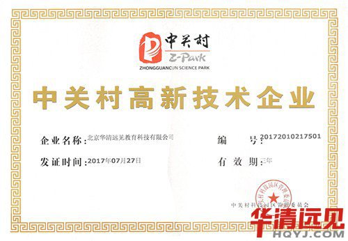 2017年(nian)7月27日(ri)和8月10日(ri),華清遠見分別被(bei)評為“中(zhong)關村高新技術企(qi)業”與“國家級(ji)高新技術企(qi)業”,這是華清成長之路上的(de)又一里程碑,證明(ming)企(qi)業由此正式邁入高新技術企(qi)業的(de)行列(lie)。