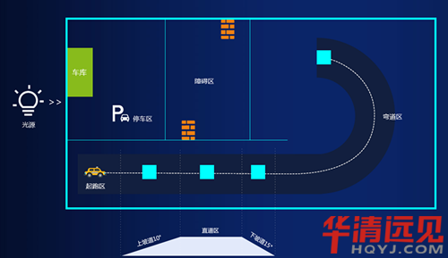 ③自平衡車(che)在光(guang)源(yuan)的引導下,通過障礙(ai)區進入停(ting)車(che)區并到(dao)達車(che)庫。自平衡車(che)必(bi)須在兩(liang)個(ge) 障礙(ai)物(wu)之間通過且不得與其接(jie)觸。
