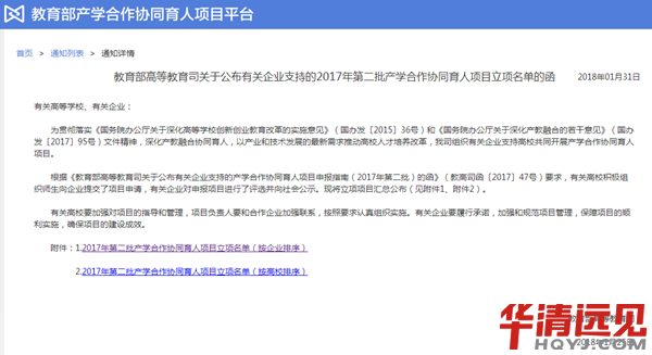 2017年產學合作協同(tong)育(yu)人(ren)項(xiang)目(mu)立項(xiang)名單(dan) 華清遠(yuan)見191個(ge)項(xiang)目(mu)上(shang)榜