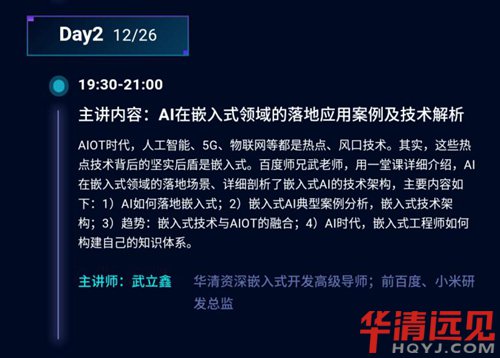 為(wei)了(le)讓更多人了(le)解這個時(shi)(shi)代的(de)萬物智(zhi)(zhi)聯時(shi)(shi)代的(de)核心技(ji)(ji)(ji)術(shu)、行業大勢(shi)及(ji)企業人才需(xu)求(qiu),華(hua)清(qing)遠見(jian)聯手百度(du)(du)智(zhi)(zhi)能云共同打造“2019嵌(qian)入(ru)式人工智(zhi)(zhi)能年度(du)(du)盛(sheng)會”,此次大會將(jiang)于12月25/26/27日19:30-21:00全程網絡(luo)直(zhi)播。會議將(jiang)聚(ju)(ju)焦萬物智(zhi)(zhi)聯大時(shi)(shi)代背(bei)景(jing)下嵌(qian)入(ru)式AI的(de)未來(lai),聚(ju)(ju)焦多技(ji)(ji)(ji)術(shu)融合(he)創新、軟硬(ying)件深度(du)(du)融合(he)下的(de)技(ji)(ji)(ji)術(shu)發(fa)展趨勢(shi)、落(luo)地應用及(ji)人才需(xu)求(qiu)前景(jing)。