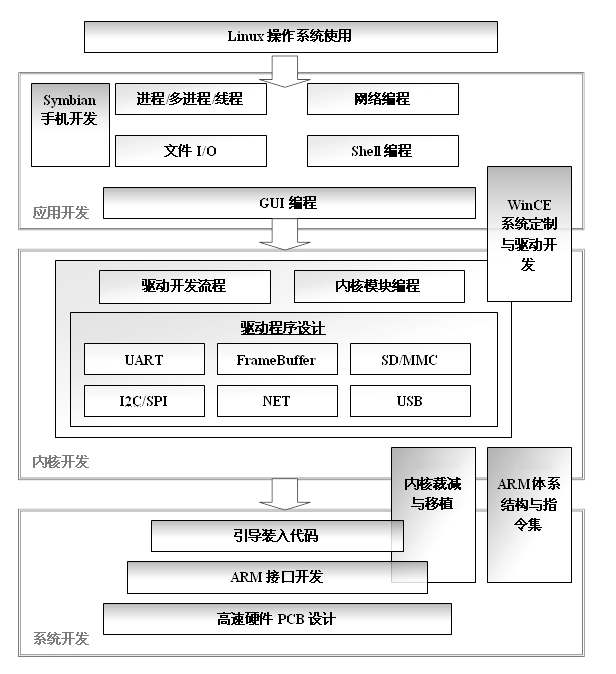· 課程設計之初,華清遠見公司就聯合三星、微軟等著名企業,直接面向企業對嵌入式軟件行業的職位需求進行了全方位的調研,推出“職業領航課程”,直接面向職業崗位; · 課程采用“理論講解 + 課堂實驗 + 項目實戰”的授課模式,項目試驗貫穿整個教學過程中,同時加強教師與學員的互動交流,使學員在實驗中掌握理論知識,在實戰中提高動手能力并通過項目實踐具備企業需求的工作經驗; · 課程涵(han)蓋了目(mu)前嵌入式開(kai)發(fa)的主(zhu)流工具和技術,以嵌入式linux開(kai)發(fa)為主(zhu),為拓寬(kuan)學員(yuan)知識面(mian)適(shi)應各種嵌入式操作系統產(chan)品需(xu)求,在課程內(nei)容(rong)中(zhong)還安排(pai)了WinCE、Symbian開(kai)發(fa)的內(nei)容(rong),使學員(yuan)具備其(qi)它嵌入式操作系統的開(kai)發(fa)能力(li)。