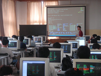 此次培訓活動共有29名學員參加,清華實驗室里幾乎座無虛席。預科班由經驗豐富的孫天澤老師主講,孫老師是華清遠見的講師,具有多年嵌入式開發實戰經驗,并有多部著作出版。在課堂上,孫老師以理論講解與上機實踐的方式向學員們詳細介紹了嵌入式linux的基礎知識以及開發流程,其詳細的講解、豐富的知識以及耐心的指導受到了廣大學員的一致好評。一天的課程被安排得滿滿的,初學linux的學員們興致都非常高,