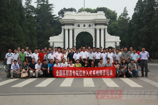 為進一步推動高職高專院校嵌入式系統教學的開展,加強各高職高專院校同行間交流,培養嵌入式系統的師資力量,由華清遠見嵌入式培訓中心主辦、教育部高職高專電子信息專業指導委員會與人民郵電出版社協辦的2009年暑期“全國高職高專嵌入式系統師資培訓班”于7月27日在清華大學第一教學樓舉辦了開課典禮,熱烈歡迎來自全國各高職高專院校的教師們到京參加培訓。本次培訓匯集了全國四十余所高校的五十多位教師,華清遠見做為這次培訓的主辦方,承擔了全部內容的培訓。教育部高職高專電子信息專業教學指導委員會的高林主任出席了師資培訓的開學典禮,對來自全國各高校的教師表示熱烈的歡迎,也表達了教職委對各高校開展嵌入式系統教學工作的支持及對各位任課教師的熱切期望,同時預祝本次師資培訓的圓滿成功;人民郵電出版社的姚副社長也出席了本次開學典禮,對高校今后開展嵌入式系統教學工作中教材的提供給予了充分的保證,并針對此次的師資培訓,贈送給各高校教師一套嵌入式系統教材以供參考;主辦方華清遠見的總經理季老師也對各高校的教師表示了熱烈的歡迎,介紹了本次培訓的內容和目的,也表達了做為專業的嵌入式培訓機構,希望在今后能夠和各高校建立長期的聯系,盡我們所能幫助各高校嵌入式教學工作的開展。開學典禮結束之后,各位老師們在清華大學合影留念。