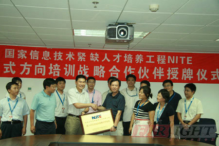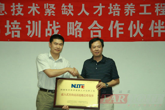 2009年7月31日,華清遠見嵌入式培訓中心與工業和信息化部軟件與集成電路促進中心(簡稱CSIP)簽署了合作協議,并舉行了隆重的合作伙伴授牌儀式。工業和信息化部軟件與集成電路促進中心副主任邱善勤博士、教育培訓部吳宏雷主任、華清遠見總裁季久峰及相關負責人出席了此次授牌儀式。自此,華清遠見正式成為信息技術緊缺人才培養工程(National Information Technology Education Project,簡稱NITE)培(pei)訓戰略合作伙伴(ban)。憑(ping)借(jie)多年在嵌入式(shi)專業領(ling)域內的卓越貢獻和權威地位(wei),華清遠見(jian)也(ye)成為了首(shou)家獲(huo)NITE授權的嵌入式(shi)方向培(pei)訓機構。