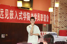 一生要走多遠的路程,經過多少年,才能走到終點;夢想需要多久的時間,多少血和淚,才能慢慢實現;天地間任我展翅高飛,誰說那是天真的預言;風中揮舞狂亂的雙手,寫下燦爛的詩篇,不管有多么疲倦;潮來潮往世界多變遷,迎接光輝歲月,為它一生奉獻……。 2011年(nian)(nian)9月24日(ri),華清遠(yuan)(yuan)見教(jiao)育科(ke)技(ji)集(ji)團一(yi)(yi)年(nian)(nian)一(yi)(yi)度的(de)(de)(de)老(lao)(lao)(lao)學(xue)(xue)員(yuan)聯誼(yi)會在北(bei)京總部實訓基地(di)—財智大廈隆重(zhong)舉行(xing)。作為分布在全(quan)國各地(di)華清遠(yuan)(yuan)見教(jiao)育科(ke)技(ji)集(ji)團成功就業的(de)(de)(de)上萬名老(lao)(lao)(lao)學(xue)(xue)員(yuan)的(de)(de)(de)代表(biao),來(lai)自四面(mian)八方、熱切希望“回家看(kan)看(kan)”的(de)(de)(de)50多位(wei)嵌入(ru)式學(xue)(xue)院的(de)(de)(de)老(lao)(lao)(lao)學(xue)(xue)員(yuan),興奮地(di)與華清遠(yuan)(yuan)見的(de)(de)(de)老(lao)(lao)(lao)師們相聚在一(yi)(yi)起,共(gong)同回味(wei)曾經在華清遠(yuan)(yuan)見留下的(de)(de)(de)歡笑(xiao)、淚水(shui)和汗(han)水(shui)。共(gong)同回顧一(yi)(yi)年(nian)(nian)以來(lai)的(de)(de)(de)成長(chang)歷程(cheng)、彼此分享在專業嵌入(ru)式崗位(wei)上的(de)(de)(de)點(dian)滴收獲、點(dian)滴進步(bu)! 從下午到晚上,老學(xue)員們(men)和(he)嵌(qian)入(ru)式學(xue)院的(de)(de)良師(shi)、益友歡聚(ju)在一(yi)起,他們(men)都(dou)是在過去一(yi)年從華清遠見(jian)教育科技(ji)集團的(de)(de)課堂上成(cheng)功走上專業(ye)嵌(qian)入(ru)式研(yan)發工(gong)程師(shi)的(de)(de)工(gong)作崗位,大家再次(ci)相聚(ju),共同回顧一(yi)年來的(de)(de)收獲和(he)成(cheng)長(chang),共同關注嵌(qian)入(ru)式行業(ye)的(de)(de)快速成(cheng)長(chang),暢(chang)談(tan)著事(shi)業(ye)上的(de)(de)成(cheng)就和(he)未來的(de)(de)發展(zhan)規劃(hua)。整個會場洋(yang)溢著喜慶(qing)的(de)(de)氣氛、充滿(man)了歡聲(sheng)笑語。道不完的(de)(de)感謝(xie),唱不完的(de)(de)懷念,更有說(shuo)不完的(de)(de)嵌(qian)入(ru)式美麗生活!讓我(wo)們(men)永遠記住這些(xie)畫(hua)面,讓我(wo)們(men)能夠在短暫歡聚(ju)、開心(xin)暢(chang)聊之(zhi)后(hou),繼(ji)續彼此加油、相互鼓勵,為了心(xin)中那個不變的(de)(de)嵌(qian)入(ru)式夢想(xiang),一(yi)如(ru)既往地(di)執著前行!