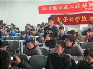 2012年11月24日,由華清遠(yuan)見(jian)成都(dou)中(zhong)心(xin)主(zhu)辦(ban),電子(zi)科技大(da)學(xue)(xue)研(yan)(yan)(yan)究生會(hui)(hui)電子(zi)科學(xue)(xue)技術(shu)學(xue)(xue)院(yuan)研(yan)(yan)(yan)究生分會(hui)(hui)承辦(ban)的"嵌入(ru)式(shi)底層開(kai)發(fa)關鍵(jian)技術(shu)及典型應用案(an)例(li)分析"在成都(dou)電子(zi)科技大(da)學(xue)(xue)清水河校(xiao)(xiao)區品學(xue)(xue)樓成功舉辦(ban)。活動(dong)當天由華清遠(yuan)見(jian)成都(dou)中(zhong)心(xin)三位(wei)頂尖的嵌入(ru)式(shi)行(xing)業專家:王海寧老師、袁祖(zu)剛老師、潘(pan)友華老師擔任(ren)主(zhu)講(jiang)。本次活動(dong)吸引了近200名嵌入(ru)式(shi)愛好者們的積極參與,參加講(jiang)座(zuo)的朋友大(da)多是來自企業的工程師、高校(xiao)(xiao)相關專業的研(yan)(yan)(yan)究生、以(yi)及在校(xiao)(xiao)的大(da)學(xue)(xue)本科生,全場座(zuo)無虛(xu)席,參與者與幾位(wei)技術(shu)專家一(yi)起探討嵌入(ru)式(shi)的行(xing)業發(fa)展(zhan)動(dong)態和新(xin)技術(shu)。 本次(ci)講(jiang)(jiang)座分為(wei)三個(ge)專題:從(cong)linux內(nei)(nei)(nei)核啟動(dong)(dong)流(liu)程(cheng)及環(huan)(huan)境搭建、到Platform設(she)備驅(qu)動(dong)(dong)和Linux字(zi)符(fu)設(she)備驅(qu)動(dong)(dong)開發的(de)(de)(de)(de)(de)解析,分別由華清遠見成都(dou)中心高級(ji)講(jiang)(jiang)師王(wang)海寧老(lao)(lao)(lao)師、袁祖剛老(lao)(lao)(lao)師、潘友(you)華老(lao)(lao)(lao)師擔任主(zhu)(zhu)講(jiang)(jiang)人。王(wang)海寧老(lao)(lao)(lao)師以S5PC100作為(wei)硬件平臺,圍繞啟動(dong)(dong)linux內(nei)(nei)(nei)核這一需求,對uboot加載zImage/uImage格式的(de)(de)(de)(de)(de)內(nei)(nei)(nei)核過程(cheng)進(jin)行分析;袁祖剛老(lao)(lao)(lao)師講(jiang)(jiang)解了(le)淺析設(she)備和主(zhu)(zhu)機分離的(de)(de)(de)(de)(de)設(she)計(ji)思想;潘友(you)華老(lao)(lao)(lao)師主(zhu)(zhu)要從(cong)設(she)計(ji)角度出發,以字(zi)符(fu)設(she)備驅(qu)動(dong)(dong)工作原理為(wei)例,淺析內(nei)(nei)(nei)核設(she)計(ji)及實現的(de)(de)(de)(de)(de)原理詳細(xi)講(jiang)(jiang)解。本次(ci)講(jiang)(jiang)座總共持續了(le)3個(ge)半小時,主(zhu)(zhu)講(jiang)(jiang)老(lao)(lao)(lao)師精彩的(de)(de)(de)(de)(de)演(yan)講(jiang)(jiang)讓在場(chang)所有嵌(qian)入式愛好者(zhe)(zhe)都(dou)受益(yi)匪淺。每個(ge)專題后的(de)(de)(de)(de)(de)Q&A互動(dong)(dong)環(huan)(huan)節(jie),主(zhu)(zhu)講(jiang)(jiang)老(lao)(lao)(lao)師精彩的(de)(de)(de)(de)(de)解答迎(ying)來了(le)臺下陣陣掌(zhang)聲。講(jiang)(jiang)座活(huo)動(dong)(dong)的(de)(de)(de)(de)(de)場(chang)間短暫(zan)的(de)(de)(de)(de)(de)休息(xi)時間,大家(jia)也(ye)不愿意(yi)錯失向(xiang)這些(xie)經(jing)驗豐富的(de)(de)(de)(de)(de)專家(jia)們請教的(de)(de)(de)(de)(de)機會(hui),詢問各種學習、工作中遇到的(de)(de)(de)(de)(de)技術問題。活(huo)動(dong)(dong)后的(de)(de)(de)(de)(de)抽獎環(huan)(huan)節(jie),豐厚的(de)(de)(de)(de)(de)獎品(pin)吸引了(le)參與者(zhe)(zhe)們強烈的(de)(de)(de)(de)(de)關注,把整個(ge)活(huo)動(dong)(dong)推向(xiang)了(le)一個(ge)新的(de)(de)(de)(de)(de)高潮。 場外展臺上華清遠見自主研(yan)發的實(shi)(shi)驗(yan)平臺以(yi)及公開出版(ban)的嵌入(ru)(ru)式系列書籍也吸引(yin)了(le)眾(zhong)多嵌入(ru)(ru)式愛好者的目(mu)光,華清遠見自主研(yan)發的ARM cortex-A8平臺也得到業(ye)內工程師(shi)的高度關注(zhu),潘友華老師(shi)在(zai)展臺前為大家演(yan)示嵌入(ru)(ru)式技術(shu)如何實(shi)(shi)現物聯網(wang),整(zheng)個(ge)展臺被嵌入(ru)(ru)式愛好者們團團圍住(zhu),贊嘆聲(sheng)此起彼伏。 隨(sui)著物聯網時代的到來,嵌(qian)入(ru)(ru)(ru)式(shi)也得到了(le)社會各界越來越多的關注(zhu),作為的嵌(qian)入(ru)(ru)(ru)式(shi)服(fu)務機構,華(hua)清(qing)遠(yuan)見(jian)一直致力于嵌(qian)入(ru)(ru)(ru)式(shi)的推(tui)(tui)廣與(yu)普(pu)及。本(ben)次嵌(qian)入(ru)(ru)(ru)式(shi)技(ji)術(shu)專題講座讓西南地(di)區的技(ji)術(shu)愛好者了(le)解(jie)到嵌(qian)入(ru)(ru)(ru)式(shi)發(fa)展(zhan)的新(xin)動態,讓參(can)與(yu)者對嵌(qian)入(ru)(ru)(ru)式(shi)有了(le)更加清(qing)晰的了(le)解(jie)和把握。"專業(ye)始于專注(zhu),卓識源于遠(yuan)見(jian)",華(hua)清(qing)遠(yuan)見(jian)成都中心(xin)將一如既往(wang)地(di)專注(zhu)于西南地(di)區嵌(qian)入(ru)(ru)(ru)式(shi)技(ji)術(shu)的推(tui)(tui)廣和普(pu)及,為嵌(qian)入(ru)(ru)(ru)式(shi)行業(ye)持(chi)續(xu)、穩(wen)定地(di)發(fa)展(zhan)盡一份(fen)力!