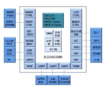 附(fu):關于龍芯GSC3280芯片的介紹 GSC3280芯(xin)(xin)片是(shi)一款(kuan)主要面向工業(ye)終端類應用(yong)(yong)的SOC芯(xin)(xin)片。GSC3280芯(xin)(xin)片的一個顯著特(te)征是(shi)采用(yong)(yong)了32位龍(long)芯(xin)(xin)處理(li)器(qi)作(zuo)為主控處理(li)器(qi),兼(jian)容MIPS指(zhi)令。32位龍(long)芯(xin)(xin)處理(li)器(qi)是(shi)一款(kuan)7級流水亂序執行RISC處理(li)器(qi), 具(ju)有獨(du)立的16KB指(zhi)令cache與16KB數據cache,支持MMU,可(ke)以運(yun)行Linux、WinCE、VxWorks等主流操作(zuo)系統(tong)。