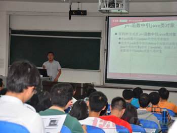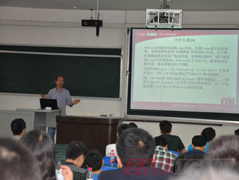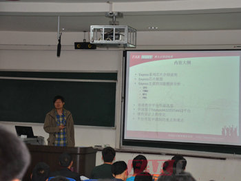 | 2015年4月18日(ri),由(you)華(hua)清遠見成都(dou)中心與(yu)(yu)成都(dou)物聯網人才專(zhuan)(zhuan)(zhuan)委會(hui)主辦,四(si)川大學(xue)(xue)電(dian)子信息學(xue)(xue)院(yuan)研分(fen)會(hui)承辦的“移動互聯時代的王者:android系統技術專(zhuan)(zhuan)(zhuan)題講座”在四(si)川大學(xue)(xue)望江(jiang)校(xiao)區(qu)東三教成功舉辦。活動當天(tian)由(you)華(hua)清遠見成都(dou)中心三位頂尖的行業專(zhuan)(zhuan)(zhuan)家:王光榮(rong)老(lao)師(shi)、袁祖剛老(lao)師(shi)、潘(pan)友華(hua)老(lao)師(shi)擔任主講老(lao)師(shi)。本(ben)次活動吸引了(le)100多名嵌入式愛(ai)好(hao)者們的積(ji)極(ji)參(can)與(yu)(yu),參(can)加講座的朋友大多是來自企業的工(gong)程師(shi)、高校(xiao)相關(guan)專(zhuan)(zhuan)(zhuan)業的教師(shi)、以(yi)及在校(xiao)的大學(xue)(xue)生,全場座無虛席,參(can)與(yu)(yu)者積(ji)極(ji)與(yu)(yu)幾位技術專(zhuan)(zhuan)(zhuan)家一起(qi)探討Android的行業發展動態和(he)新技術。 本次講(jiang)(jiang)座分(fen)了三(san)個(ge)專題:從Java與C的(de)和(he)諧(xie)生(sheng)活:Android NDK技(ji)術分(fen)析、android的(de)自我救贖:android HAL技(ji)術分(fen)析、后是(shi)智能(neng)之(zhi)星:三(san)星Exynos系(xi)(xi)列芯(xin)片技(ji)術分(fen)析及應用(yong)(yong)案例,分(fen)別由成都中心講(jiang)(jiang)師(shi)(shi)王光榮(rong)老(lao)師(shi)(shi)、潘(pan)友華(hua)(hua)老(lao)師(shi)(shi)、高(gao)級講(jiang)(jiang)師(shi)(shi)袁祖剛老(lao)師(shi)(shi)擔任(ren)主(zhu)講(jiang)(jiang)人。王光榮(rong)老(lao)師(shi)(shi)主(zhu)要對如何使用(yong)(yong)NDK技(ji)術去(qu)實現“Java+C/C++”編程(cheng)做了詳細的(de)分(fen)析;潘(pan)友華(hua)(hua)老(lao)師(shi)(shi)主(zhu)要講(jiang)(jiang)解涉(she)及HAL存在的(de)原(yuan)因、新舊框(kuang)架及新框(kuang)架的(de)詳細技(ji)術分(fen)析,為想(xiang)了解和(he)學習android的(de)底層的(de)朋友開(kai)(kai)啟(qi)一道門。袁祖剛老(lao)師(shi)(shi)主(zhu)要從android系(xi)(xi)統硬(ying)件平臺的(de)角度出(chu)發(fa),針(zhen)對Exynos系(xi)(xi)列soc芯(xin)片進行(xing)介(jie)紹,并結合華(hua)(hua)清自主(zhu)研發(fa)的(de)教學平臺(fs4412開(kai)(kai)發(fa)板)進行(xing)應用(yong)(yong)實例分(fen)析。 本次講(jiang)(jiang)(jiang)座總共持續了(le)3個(ge)半小時,主(zhu)(zhu)講(jiang)(jiang)(jiang)老師(shi)(shi)精(jing)彩的演(yan)講(jiang)(jiang)(jiang)讓在場(chang)所有(you)Android愛好者都受益(yi)匪淺。每個(ge)專題后的問(wen)答(da)環節,參與(yu)的朋友(you)們(men)(men)都積極提問(wen)并得(de)到(dao)(dao)了(le)主(zhu)(zhu)講(jiang)(jiang)(jiang)老師(shi)(shi)精(jing)彩的解(jie)答(da)。講(jiang)(jiang)(jiang)座中場(chang)短暫的休息時間,大家也(ye)不愿(yuan)意錯失(shi)良機都圍著主(zhu)(zhu)講(jiang)(jiang)(jiang)老師(shi)(shi)詢問(wen)各種學習、工作中遇(yu)到(dao)(dao)的技術(shu)(shu)問(wen)題。場(chang)外展臺(tai)上華清遠見自(zi)主(zhu)(zhu)研發(fa)的實(shi)(shi)驗(yan)平臺(tai)以及公開出版(ban)的Android、嵌(qian)入式(shi)(shi)系(xi)列書籍(ji)也(ye)吸引了(le)眾多Androi愛好者的目光,華清遠見自(zi)主(zhu)(zhu)研發(fa)的嵌(qian)入式(shi)(shi)、物聯(lian)(lian)網實(shi)(shi)驗(yan)平臺(tai)也(ye)得(de)到(dao)(dao)業內工程(cheng)師(shi)(shi)及高(gao)校學生的高(gao)度關(guan)注(zhu),潘友(you)華老師(shi)(shi)在展臺(tai)前為大家演(yan)示了(le)嵌(qian)入式(shi)(shi)、物聯(lian)(lian)網系(xi)統及Android技術(shu)(shu)如何實(shi)(shi)現物聯(lian)(lian)網,整個(ge)展臺(tai)被嵌(qian)入式(shi)(shi)愛好者們(men)(men)團(tuan)團(tuan)圍住,贊嘆聲此起彼伏(fu)。活動中途(tu)和后的抽獎環節,吸引了(le)參與(yu)者們(men)(men)強烈的關(guan)注(zhu),把整個(ge)活動推向了(le)一(yi)個(ge)又一(yi)個(ge)的高(gao)潮(chao)。 活動照片: