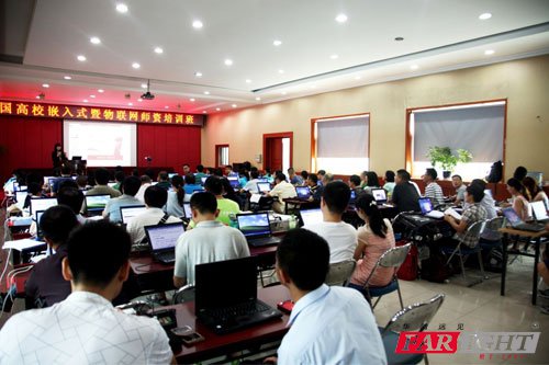 為進(jin)(jin)一步推(tui)動全(quan)國高(gao)(gao)等(deng)(deng)院校(xiao)嵌(qian)入(ru)式暨物聯(lian)網(wang)專業教(jiao)(jiao)學工作的(de)(de)開(kai)展,加(jia)強(qiang)各(ge)高(gao)(gao)等(deng)(deng)院校(xiao)同行間(jian)的(de)(de)交(jiao)流,培(pei)養(yang)嵌(qian)入(ru)式及(ji)物聯(lian)網(wang)的(de)(de)師(shi)資力量,2016年7月(yue)22日上午9時,在工信部(bu)軟(ruan)件與(yu)集(ji)成電路促(cu)進(jin)(jin)中(zhong)心(xin)和教(jiao)(jiao)育部(bu)教(jiao)(jiao)育管理信息中(zhong)心(xin)指導下(xia),由華(hua)清遠見(jian)教(jiao)(jiao)育科技(ji)集(ji)團(tuan)主辦、軟(ruan)件行業協(xie)會(hui)嵌(qian)入(ru)式系統分會(hui)協(xie)辦,并(bing)聯(lian)手ARM、飛思卡爾、Atmel共(gong)同舉辦的(de)(de)"全(quan)國高(gao)(gao)校(xiao)嵌(qian)入(ru)式暨物聯(lian)網(wang)師(shi)資培(pei)訓(xun)班(ban)"在京隆重開(kai)講。此次會(hui)議的(de)(de)參會(hui)嘉賓有華(hua)清遠見(jian)教(jiao)(jiao)育科技(ji)集(ji)團(tuan)少校(xiao)總(zong)裁季久峰、研(yan)發中(zhong)心(xin)技(ji)術總(zong)監劉洪濤,以及(ji)來自(zi)全(quan)國近五(wu)十所學校(xiao)的(de)(de)近百名精英教(jiao)(jiao)師(shi)。