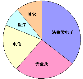 嵌入式系統無疑是當前熱門有發展前途的IT應用領域之一。嵌入式系統用在一些特定專用設備上,通常這些設備的硬件資源(如處理器、存儲器等)非常有限,并且對成本很敏感,有時對實時響應要求很高等。特別是隨著消費家電的智能化,嵌入式更顯重要。按照行業細分,嵌入式產品主要分布在消費類電子、通信、醫療、安全等行業(圖1)。