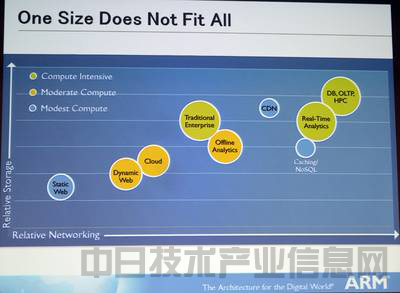 服務器的(de)(de)用途(tu)和負荷種類。越靠(kao)近右上方(fang)對(dui)運算(suan)性能(neng)(neng)的(de)(de)要求越高。ARM處理器要覆蓋的(de)(de)領域(yu)是(shi),相(xiang)對(dui)于絕對(dui)高的(de)(de)運算(suan)性能(neng)(neng),更(geng)重視(shi)其與耗(hao)電量的(de)(de)均衡以及(ji)低耗(hao)電量的(de)(de)領域(yu)。 John Cornish提到了SNS(社交網絡服(fu)(fu)(fu)務(wu)(wu))的基(ji)礎設(she)施和(he)Web服(fu)(fu)(fu)務(wu)(wu)器的主(zhu)機服(fu)(fu)(fu)務(wu)(wu)。他說:“提供這些(xie)服(fu)(fu)(fu)務(wu)(wu)的企業,其利潤源就是服(fu)(fu)(fu)務(wu)(wu)器基(ji)礎設(she)施。降低服(fu)(fu)(fu)務(wu)(wu)器的購買成本,或更換為低耗電量服(fu)(fu)(fu)務(wu)(wu)器與利潤直接(jie)相關。”一(yi)般而(er)言,提供這些(xie)服(fu)(fu)(fu)務(wu)(wu)的企業愿意采用新技(ji)術,因而(er)比較容易涉足。