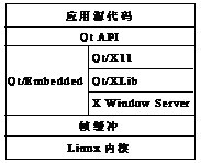 | Qt/Embedded以(yi)原(yuan)始(shi)Qt為基礎,并做了(le)許多出(chu)色的調整以(yi)適用于嵌入(ru)(ru)式環境。Qt/Embedded通過Qt API與(yu)Linux I/O設施直接交(jiao)互(hu),成為嵌入(ru)(ru)式Linux端口。同Qt/X11相比,Qt/Embedded很省內(nei)存,因(yin)為它(ta)不需要(yao)一(yi)個X服(fu)務器(qi)或是Xlib庫,它(ta)在底(di)層拋棄了(le)X lib,采用framebuffer(幀(zhen)緩沖(chong))作(zuo)為底(di)層圖形接口。同時,將(jiang)外部輸入(ru)(ru)設備抽象為keyboard和(he)mouse輸入(ru)(ru)事件。Qt/Embedde的應用程序(xu)可以(yi)直接寫內(nei)核緩沖(chong)幀(zhen),這避免開發者使用繁瑣的Xlib/Server系(xi)統。圖1.1比較了(le)Qt/Embedded與(yu)Qt/X11的架構區(qu)別。