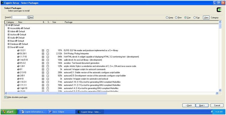 選定鏡像網站后,點擊Next按鈕(niu),Cygwin就會(hui)下載,并向你展示可下載軟件(jian)包的列表: