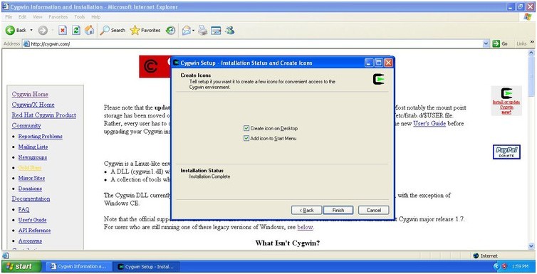 允許它(ta)在(zai)桌(zhuo)面(mian)創建(jian)圖(tu)標(biao)。點(dian)擊Finish按(an)鈕后,你(ni)就會看到桌(zhuo)面(mian)上出(chu)現了一個Cygwin圖(tu)標(biao),打(da)開cygwin終端