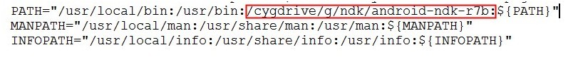 2、下載安裝Android NDK 如何下載和安裝Android NDk本文就不贅述了,下載地址為://developer.android.com/sdk/ndk/index.html 3、配置ndk的環境變量 把ndk的解壓的目(mu)(mu)錄配置到cygwin的環境變量里面,在cygwin的安裝目(mu)(mu)錄etc的目(mu)(mu)錄下(xia)有一個frofile文件(jian),把ndk的目(mu)(mu)錄加到path上