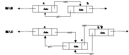 這樣,在雙向(xiang)鏈表中由(you)(you)任何一個節點(dian)都可以很(hen)容易地找到其(qi)前面(mian)的節點(dian)和后(hou)面(mian)的節點(dian),而不需要在上述的插入(ru)(及刪(shan)除(chu))操作中由(you)(you)頭節點(dian)開始尋(xun)找,定義雙向(xiang)鏈表的節點(dian)結(jie)構為:     struct link_node 嵌入式linux內核雙向鏈表的常見操作 (1)增加節點 在(zai)雙向鏈表中(zhong)增加一(yi)個(ge)節點(dian)要比在(zai)單(dan)鏈表中(zhong)的插入操作復雜地多,因(yin)為在(zai)此處節點(dian)next指(zhi)針和priv指(zhi)針會同時變化,如圖1.2所示: