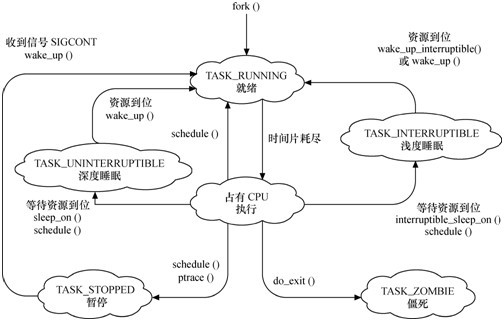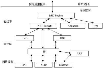 | Linux內(nei)核主要由(you)進程調度(SCHED)、內(nei)存管(guan)理(MM)、虛擬文件系統(VFS)、網絡(luo)接口(kou)(NET)和進程間通信(IPC)5個子系統組成,如圖1所(suo)示。      1.進程調度 進(jin)程(cheng)調(diao)度(du)控制系(xi)(xi)統(tong)中(zhong)(zhong)(zhong)的(de)(de)多個進(jin)程(cheng)對CPU的(de)(de)訪問(wen),使得多個進(jin)程(cheng)能在CPU中(zhong)(zhong)(zhong)“微觀串行(xing),宏(hong)觀并行(xing)”地執行(xing)。進(jin)程(cheng)調(diao)度(du)處于系(xi)(xi)統(tong)的(de)(de)中(zhong)(zhong)(zhong)心位置,內核中(zhong)(zhong)(zhong)其他(ta)的(de)(de)子(zi)系(xi)(xi)統(tong)都依(yi)賴它,因(yin)為(wei)每個子(zi)系(xi)(xi)統(tong)都需要掛起或恢(hui)復進(jin)程(cheng)。      如上(shang)圖2所(suo)示,Linux的(de)(de)進程(cheng)在幾(ji)個(ge)狀態(tai)間進行切換。在設(she)備驅(qu)動(dong)編(bian)程(cheng)中,當(dang)請(qing)求(qiu)的(de)(de)資源不(bu)能(neng)得到(dao)滿足時(shi),驅(qu)動(dong)一般(ban)會調度(du)其他進程(cheng)執行,并使本進程(cheng)進入(ru)睡(shui)眠(mian)(mian)狀態(tai),直到(dao)它請(qing)求(qiu)的(de)(de)資源被釋放,才會被喚(huan)醒(xing)而(er)進入(ru)就(jiu)緒(xu)態(tai)。睡(shui)眠(mian)(mian)分成(cheng)可被打斷(duan)(duan)(duan)的(de)(de)睡(shui)眠(mian)(mian)和不(bu)可被打斷(duan)(duan)(duan)的(de)(de)睡(shui)眠(mian)(mian),兩者的(de)(de)區別在于可被打斷(duan)(duan)(duan)的(de)(de)睡(shui)眠(mian)(mian)在收到(dao)信號的(de)(de)時(shi)候(hou)會醒(xing)。 在(zai)設(she)備驅動(dong)編程中,當請(qing)求的(de)資(zi)源(yuan)不能得到(dao)(dao)滿足時,驅動(dong)一般會調度其他進(jin)程執(zhi)行,其對應進(jin)程進(jin)入睡眠(mian)狀態,直(zhi)到(dao)(dao)它(ta)請(qing)求的(de)資(zi)源(yuan)被釋(shi)放(fang),才(cai)會被喚醒而進(jin)入就緒態。   設備(bei)驅(qu)動中,如果(guo)需(xu)要(yao)幾個并(bing)發(fa)執(zhi)行(xing)的任務,可以(yi)啟動內核(he)線程,啟動內核(he)線程的函數為:   pid_t kernel_thread(int (*fn)(void *), void *arg, unsigned long flags); 2.內存管理 內(nei)存(cun)管理的主要作用是控(kong)制多個進(jin)程(cheng)安全地共享主內(nei)存(cun)區(qu)域。當(dang)CPU提供(gong)內(nei)存(cun)管理單(dan)元(MMU)時,Linux內(nei)存(cun)管理完成為(wei)每個進(jin)程(cheng)進(jin)行(xing)虛(xu)擬內(nei)存(cun)到物理內(nei)存(cun)的轉(zhuan)換。Linux 2.6引入了(le)對無(wu)MMU CPU的支持。 如下圖3所(suo)示,一般而言,Linux的每個(ge)進程享(xiang)有(you)4GB的內(nei)存(cun)空(kong)間(jian),0~3GB屬于用(yong)戶空(kong)間(jian),3~4GB屬于內(nei)核空(kong)間(jian),內(nei)核空(kong)間(jian)對常(chang)規內(nei)存(cun)、I/O設備內(nei)存(cun)以及高端內(nei)存(cun)存(cun)在不(bu)同的處(chu)理(li)方式。      3.虛擬文件系統 如下圖4所(suo)示(shi),Linux虛擬文件(jian)(jian)系(xi)(xi)統(VFS)隱藏各(ge)種(zhong)了硬件(jian)(jian)的(de)具體(ti)細(xi)節(jie),為所(suo)有的(de)設(she)備提(ti)供了統一(yi)的(de)接口。而且,它獨立(li)于各(ge)個具體(ti)的(de)文件(jian)(jian)系(xi)(xi)統,是對各(ge)種(zhong)文件(jian)(jian)系(xi)(xi)統的(de)一(yi)個抽象,它使用(yong)超      級塊super block存放文(wen)件系統(tong)相關信息,使(shi)用索引節點inode存放文(wen)件的物理(li)信息,使(shi)用目(mu)錄項dentry存放文(wen)件的邏(luo)輯信息。 4.網絡接口 網(wang)(wang)(wang)絡(luo)接口提供(gong)了對各(ge)種網(wang)(wang)(wang)絡(luo)標準(zhun)的(de)(de)(de)存(cun)取(qu)和(he)各(ge)種網(wang)(wang)(wang)絡(luo)硬(ying)件的(de)(de)(de)支持。如下圖5所示,在Linux中(zhong)網(wang)(wang)(wang)絡(luo)接口可(ke)分為網(wang)(wang)(wang)絡(luo)協(xie)(xie)議和(he)網(wang)(wang)(wang)絡(luo)驅(qu)動程序(xu),網(wang)(wang)(wang)絡(luo)協(xie)(xie)議部分負責(ze)實現(xian)每一(yi)種可(ke)能的(de)(de)(de)網(wang)(wang)(wang)絡(luo)傳輸協(xie)(xie)議,網(wang)(wang)(wang)絡(luo)設(she)備驅(qu)動程序(xu)負責(ze)與(yu)硬(ying)件設(she)備通(tong)信,每一(yi)種可(ke)能的(de)(de)(de)硬(ying)件設(she)備都有相應的(de)(de)(de)設(she)備驅(qu)動程序(xu)。      5.進程通信 進(jin)(jin)程通信(xin)(xin)支持提供進(jin)(jin)程之間的通信(xin)(xin),Linux支持進(jin)(jin)程間的多種通信(xin)(xin)機制,包含(han)信(xin)(xin)號量、共享內存、管道等,這些機制可協助(zhu)多個進(jin)(jin)程、多資源的互斥訪問、進(jin)(jin)程間的同步和消(xiao)息傳(chuan)遞。 Linux內核的(de)(de)5個組(zu)成部分之間的(de)(de)依賴(lai)關系如下。 ·進(jin)程(cheng)(cheng)調度與內存管理之間的(de)關(guan)系:這(zhe)兩(liang)個子(zi)系統互相依(yi)賴(lai)。在多道程(cheng)(cheng)序環境(jing)下(xia),程(cheng)(cheng)序要運行必須為之創建進(jin)程(cheng)(cheng),而創建進(jin)程(cheng)(cheng)的(de)第一件事情(qing),就是(shi)將程(cheng)(cheng)序和數據裝(zhuang)入內存。 ·進(jin)程間(jian)通(tong)信(xin)與內(nei)(nei)存管理(li)的(de)關系(xi):進(jin)程間(jian)通(tong)信(xin)子系(xi)統要依賴(lai)內(nei)(nei)存管理(li)支持共(gong)享內(nei)(nei)存通(tong)信(xin)機制,這種機制允許兩個進(jin)程除了擁(yong)有(you)自己的(de)私有(you)空間(jian),還可以存取共(gong)同(tong)的(de)內(nei)(nei)存區(qu)域(yu)。 ·虛(xu)擬文件(jian)系統與網(wang)絡接(jie)口(kou)之間的關系:虛(xu)擬文件(jian)系統利用網(wang)絡接(jie)口(kou)支(zhi)持網(wang)絡文件(jian)系統(NFS),也利用內存管理支(zhi)持RAMDISK設備。 ·內(nei)存(cun)管(guan)理與(yu)虛擬(ni)(