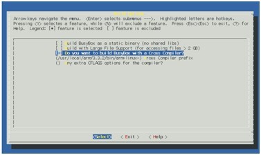 | Linux支(zhi)持多(duo)種(zhong)文(wen)(wen)件(jian)(jian)系(xi)(xi)(xi)統(tong)(tong)(tong),同樣,嵌入(ru)式(shi)Linux也支(zhi)持多(duo)種(zhong)文(wen)(wen)件(jian)(jian)系(xi)(xi)(xi)統(tong)(tong)(tong)。雖然在嵌入(ru)式(shi)系(xi)(xi)(xi)統(tong)(tong)(tong)中,由于資源受限的(de)(de)(de)(de)(de)(de)原(yuan)因(yin)(yin),它的(de)(de)(de)(de)(de)(de)文(wen)(wen)件(jian)(jian)系(xi)(xi)(xi)統(tong)(tong)(tong)和PC上的(de)(de)(de)(de)(de)(de)Linux的(de)(de)(de)(de)(de)(de)文(wen)(wen)件(jian)(jian)系(xi)(xi)(xi)統(tong)(tong)(tong)有較大的(de)(de)(de)(de)(de)(de)區別,但是(shi)(shi)(shi),它們(men)的(de)(de)(de)(de)(de)(de)總(zong)體架構是(shi)(shi)(shi)一樣的(de)(de)(de)(de)(de)(de),都是(shi)(shi)(shi)采(cai)用目錄樹的(de)(de)(de)(de)(de)(de)結構。在嵌入(ru)式(shi)系(xi)(xi)(xi)統(tong)(tong)(tong)中常(chang)(chang)見的(de)(de)(de)(de)(de)(de)文(wen)(wen)件(jian)(jian)系(xi)(xi)(xi)統(tong)(tong)(tong)有cramfs、romfs、jffs、yaffs等,這里(li)就以制作cramfs文(wen)(wen)件(jian)(jian)系(xi)(xi)(xi)統(tong)(tong)(tong)為例進行講解。cramfs文(wen)(wen)件(jian)(jian)系(xi)(xi)(xi)統(tong)(tong)(tong)是(shi)(shi)(shi)一種(zhong)經過壓縮的(de)(de)(de)(de)(de)(de)、極(ji)為簡單的(de)(de)(de)(de)(de)(de)只(zhi)讀文(wen)(wen)件(jian)(jian)系(xi)(xi)(xi)統(tong)(tong)(tong),因(yin)(yin)此非常(chang)(chang)適合(he)嵌入(ru)式(shi)系(xi)(xi)(xi)統(tong)(tong)(tong)。要注意的(de)(de)(de)(de)(de)(de)是(shi)(shi)(shi),不(bu)同的(de)(de)(de)(de)(de)(de)文(wen)(wen)件(jian)(jian)系(xi)(xi)(xi)統(tong)(tong)(tong)都有相應的(de)(de)(de)(de)(de)(de)制作工具(ju),但是(shi)(shi)(shi)其(qi)主(zhu)要的(de)(de)(de)(de)(de)(de)原(yuan)理(li)和制作方法(fa)是(shi)(shi)(shi)類似的(de)(de)(de)(de)(de)(de)。 在嵌入(ru)式(shi)Linux中(zhong),busybox是構造文(wen)件(jian)系(xi)(xi)統常用的(de)(de)軟件(jian)工(gong)(gong)具(ju)包(bao),它(ta)(ta)被非(fei)常形象(xiang)地稱為(wei)嵌入(ru)式(shi)Linux系(xi)(xi)統中(zhong)的(de)(de)“瑞士軍刀”,因為(wei)它(ta)(ta)將許多常用的(de)(de)Linux命令和(he)(he)工(gong)(gong)具(ju)結(jie)合到了(le)一個單獨的(de)(de)可執行程序(busybox)中(zhong)。雖然與相(xiang)應的(de)(de)GNU工(gong)(gong)具(ju)比(bi)較(jiao),busybox所(suo)提供的(de)(de)功能(neng)和(he)(he)參數(shu)略少,但在比(bi)較(jiao)小的(de)(de)系(xi)(xi)統(如啟動盤)或(huo)者嵌入(ru)式(shi)系(xi)(xi)統中(zhong)已經足夠了(le)。 busybox在設計上就(jiu)充分考慮了(le)(le)硬(ying)件(jian)(jian)資源(yuan)受限(xian)(xian)的(de)(de)(de)(de)(de)特殊工(gong)作環境。它(ta)(ta)采(cai)用(yong)一(yi)種很巧妙(miao)的(de)(de)(de)(de)(de)辦法減少自(zi)己的(de)(de)(de)(de)(de)體(ti)積:所有的(de)(de)(de)(de)(de)命令(ling)都(dou)通過(guo)(guo)“插(cha)(cha)件(jian)(jian)”的(de)(de)(de)(de)(de)方(fang)式(shi)(shi)集中(zhong)到(dao)一(yi)個可(ke)(ke)執(zhi)行(xing)文(wen)(wen)件(jian)(jian)中(zhong),在實(shi)際應用(yong)過(guo)(guo)程(cheng)中(zhong)通過(guo)(guo)不同(tong)的(de)(de)(de)(de)(de)符(fu)(fu)號鏈接(jie)(jie)來(lai)確(que)定到(dao)底要執(zhi)行(xing)哪個操作。例如,終生(sheng)成(cheng)的(de)(de)(de)(de)(de)可(ke)(ke)執(zhi)行(xing)文(wen)(wen)件(jian)(jian)為busybox,當為它(ta)(ta)建立一(yi)個符(fu)(fu)號鏈接(jie)(jie)ls時,就(jiu)可(ke)(ke)以通過(guo)(guo)執(zhi)行(xing)這(zhe)個新命令(ling)實(shi)現列出目錄的(de)(de)(de)(de)(de)功能(neng)。采(cai)用(yong)單一(yi)執(zhi)行(xing)文(wen)(wen)件(jian)(jian)的(de)(de)(de)(de)(de)方(fang)式(shi)(shi)大限(xian)(xian)度地(di)共享(xiang)了(le)(le)程(cheng)序代碼,甚至連文(wen)(wen)件(jian)(jian)頭、內存(cun)中(zhong)的(de)(de)(de)(de)(de)程(cheng)序控制塊等其(qi)他系(xi)(xi)統資源(yuan)都(dou)共享(xiang)了(le)(le),對于資源(yuan)比較(jiao)緊張的(de)(de)(de)(de)(de)系(xi)(xi)統來(lai)說,真是合適不過(guo)(guo)了(le)(le)。在busybox的(de)(de)(de)(de)(de)編(bian)(bian)譯過(guo)(guo)程(cheng)中(zhong),可(ke)(ke)以非(fei)常方(fang)便地(di)加減它(ta)(ta)的(de)(de)(de)(de)(de)“插(cha)(cha)件(jian)(jian)”,后的(de)(de)(de)(de)(de)符(fu)(fu)號鏈接(jie)(jie)也(ye)可(ke)(ke)以由(you)編(bian)(bian)譯系(xi)(xi)統自(zi)動生(sheng)成(cheng)。 下面用busybox構建(jian)FS2410開(kai)發板的cramfs文件系統。 (1)從busybox網站下載busybox源碼(本實例采用(yong)busybox-1.00)并解壓,接下來,根據實際需要(yao)進行(xing)busybox的配(pei)置。     $ tar jxvf busybox-1.00.tar.bz2 此時,需要設(she)(she)置與平臺相(xiang)關的(de)(de)(de)交(jiao)叉編譯選項(xiang),操作步驟(zou)為:先(xian)選中“Build Options”項(xiang)的(de)(de)(de)“Do you want to build BusyBox with a Cross Complier?”選項(xiang),然后(hou)將“Cross Compiler prefix”設(she)(she)置為“/usr/local/arm/3.3.2/bin/arm-linux-”(這是在實驗主機中的(de)(de)(de)交(jiao)叉編譯器的(de)(de)(de)安裝路徑),如圖(tu)1.7所示(shi)。      (2)編譯并安(an)裝busybox。     $ make  其中(zhong),PREFIX用于指定安裝目(mu)錄,如果不設置該選(xuan)項(xiang),則默認在當前目(mu)錄下創建_install目(mu)錄。創建的安裝目(mu)錄的內(nei)容如下:     $ ls   (3)由此可知(zhi),使(shi)用busybox軟件包(bao)所創建(jian)的文件系統(tong)還缺(que)少(shao)很多東(dong)西。   (4)通過創建系統所需的(de)目錄和文(wen)件(jian)來完善文(wen)件(jian)系統的(de)內容(rong)。     $ mkdir mnt root var tmp proc boot etc lib (5)將(jiang)所(suo)需的(de)(de)(de)交叉編譯鏈接庫(ku)復制到lib目錄(lu)(lu)中,這(zhe)些(xie)庫(ku)文件(jian)位于/usr/local/arm/3.3.2/