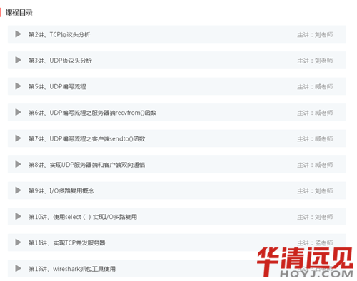 嵌(qian)入式應(ying)用(yong)開發(fa)的(de)絕大部分項(xiang)目都涉及到了(le)網絡(luo)功能,有一個好(hao)的(de)網絡(luo)編程(cheng)功底,是從事(shi)Linux應(ying)用(yong)開發(fa)的(de)基礎。華清遠(yuan)見作(zuo)為一個高端IT學習平臺,擁有多種(zhong)方向的(de)視頻學習教(jiao)程(cheng),內容涵蓋(gai)嵌(qian)入式、物聯網、Java、HTML5等等。