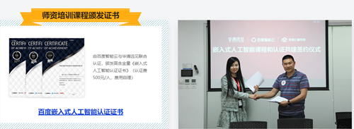 頒發由百(bai)度(du)智能云與華清遠見聯合(he)認證(zheng)的《嵌(qian)入式人(ren)工智能認證(zheng)證(zheng)書(shu)》。