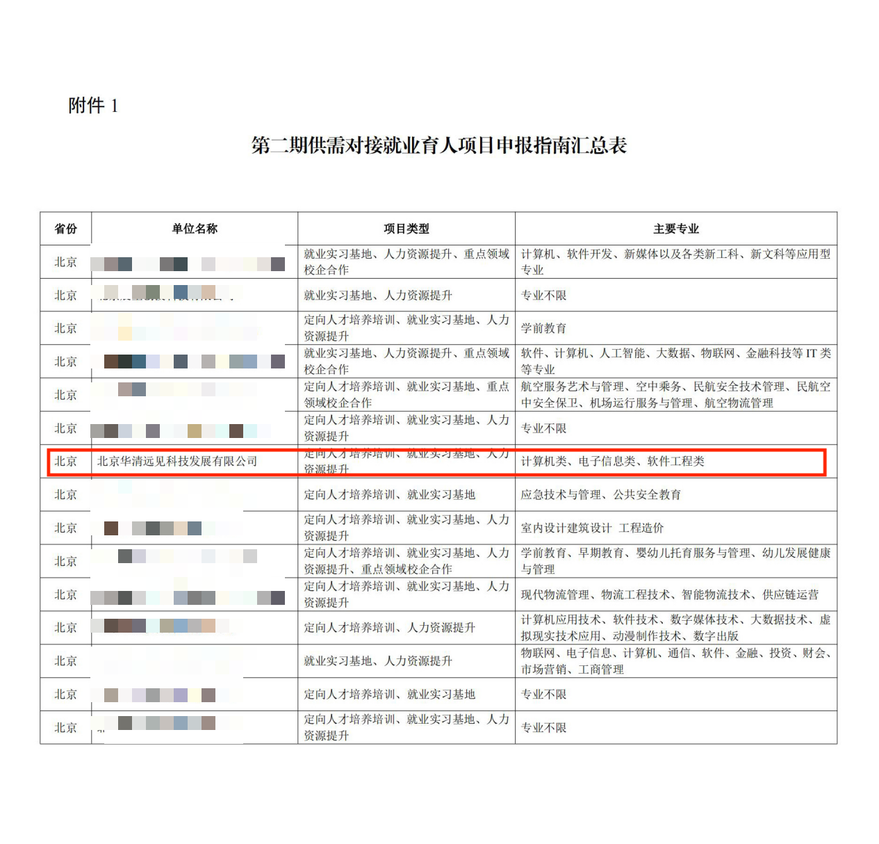 日(ri)前,“教育(yu)部高校學生司關于公(gong)布2022年(nian)供需對接(jie)就業育(yu)人(ren)項目申報指南(第二期)的(de)通(tong)知"已發布,北京華清遠見科技發展有(you)限公(gong)司通(tong)過評審,成為2022年(nian)教育(yu)部供需對接(jie)就業育(yu)人(ren)項目合(he)作企業。
