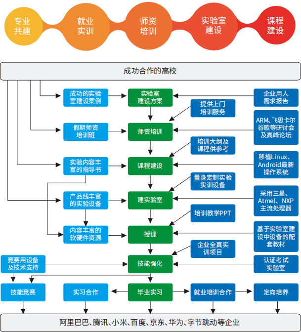 科研經費支持,華清遠見研發中心根據高校建設實驗室的需求,為高校提供相應的軟、硬件設備及教學資源等支持。技術支持,針對對應學科、專業,提供教學設備、教材、課程一體化建設服務,將技術熱點、職業技能培養、企業用人需求融入專業課程中,推動高校創新型、實用型人才培養。師資培訓支持,為高校師資提供前沿IT知識培訓,提高高校教師教育教學改革與創新的業務水平和能力。