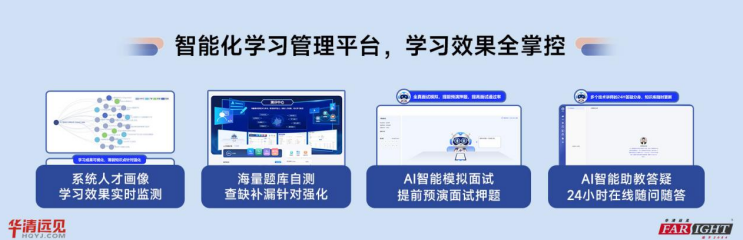 本次發布會另一大(da)亮點(dian)則是(shi)華清(qing)遠見自主研(yan)發打造(zao)的AI助學(xue)系統,囊(nang)括測(ce)評中(zhong)心(xin)、AI助教(jiao)、能(neng)力(li)畫(hua)像(xiang)三大(da)功能(neng)板塊。測(ce)評中(zhong)心(xin)配備全棧知識點(dian)題庫(ku),并(bing)提供練習(xi)和考(kao)試(shi)兩種模式,支(zhi)持(chi)章節(jie)小(xiao)測(ce)、海量(liang)題庫(ku)背題/刷題、錯題集(ji)、AI全真模擬面(mian)試(shi)等多(duo)種功能(neng)實現。AI助教(jiao)可(ke)以讓每位講(jiang)師構(gou)建專(zhuan)屬AI智(zhi)能(neng)體,整合(he)其技術(shu)知識與教(jiao)學(xue)方法,真正實現24小(xiao)時(shi)技術(shu)答疑,隨(sui)時(shi)響應學(xue)生的需(xu)求,實時(shi)解決學(xue)習(xi)過(guo)程中(zhong)遇到的問題。系統人(ren)才畫(hua)像(xiang)則可(ke)以對(dui)你(ni)的學(xue)習(xi)進(jin)度(du)實時(shi)監控(kong),實現學(xue)習(xi)成果動態可(ke)視化(hua),針對(dui)薄弱知識點(dian)進(jin)行強化(hua)。