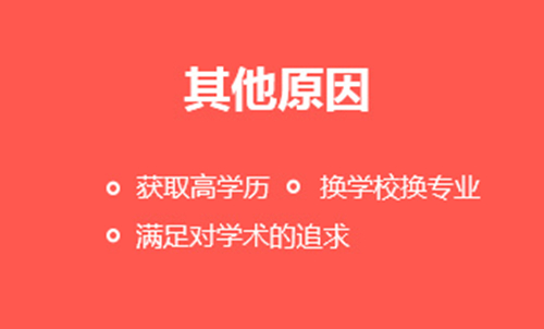 第三,我(wo)們把(ba)一些(xie)人數較(jiao)少的(de)(de)(de)(de)原(yuan)因歸攏在這(zhe)里,其中包括了家(jia)(jia)庭原(yuan)因、對學(xue)術的(de)(de)(de)(de)追(zhui)求、換學(xue)校換專業(ye)等。雖然(ran)有些(xie)富裕家(jia)(jia)庭選(xuan)擇讓孩子(zi)出國留學(xue)或直(zhi)接進家(jia)(jia)族企業(ye),家(jia)(jia)境較(jiao)差的(de)(de)(de)(de)則直(zhi)接就(jiu)業(ye)緩解家(jia)(jia)庭壓力(li),但更多的(de)(de)(de)(de)卻是家(jia)(jia)庭支持(chi)甚至逼著(zhu)去考(kao)(kao)研(yan);覺(jue)得本科(ke)專業(ye)和學(xue)校冷(leng)門就(jiu)業(ye)無(wu)(wu)優(you)勢,通過考(kao)(kao)研(yan)更換的(de)(de)(de)(de)比(bi)比(bi)皆(jie)是;剩(sheng)余那些(xie)堅持(chi)完(wan)整場考(kao)(kao)研(yan)季(ji)的(de)(de)(de)(de),寥(liao)(liao)寥(liao)(liao)無(wu)(wu)幾地只(zhi)有些(xie)追(zhui)隨著(zhu)研(yan)究(jiu)(jiu)生設立(li)最初目的(de)(de)(de)(de),為了學(xue)術研(yan)究(jiu)(jiu)的(de)(de)(de)(de)學(xue)子(zi)。