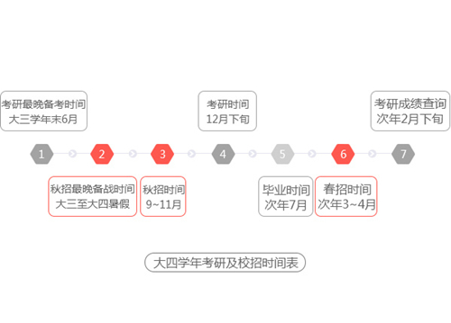 考生(sheng)通常會(hui)在大(da)(da)三開(kai)學(xue)的(de)7月(yue)(yue)份時(shi)開(kai)始關(guan)注(zhu)考研,備(bei)考越(yue)早當然越(yue)好(hao),但(dan)最晚也會(hui)在大(da)(da)三期末前的(de)6月(yue)(yue)份著手準備(bei)。即使如此(ci),到年(nian)底12月(yue)(yue)中旬的(de)初(chu)試(shi)(shi)也有整(zheng)(zheng)整(zheng)(zheng)六個(ge)月(yue)(yue)時(shi)間。這期間,由高校和(he)各企業聯合舉辦(ban)(ban)的(de)秋(qiu)季校園招聘會(hui)將(jiang)在大(da)(da)四9月(yue)(yue)份開(kai)學(xue)后舉辦(ban)(ban),持續兩到三個(ge)月(yue)(yue),為不(bu)考研的(de)同學(xue)提供充足(zu)的(de)時(shi)間選擇和(he)面試(shi)(shi)。