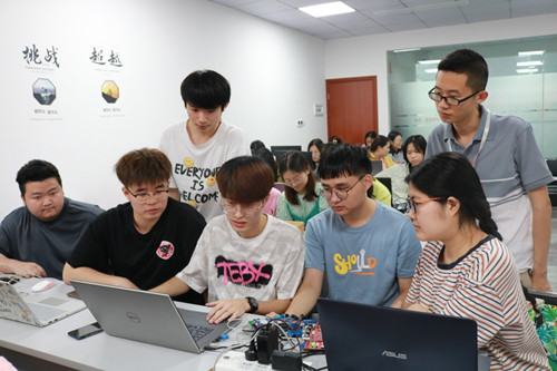 本次實訓時間一(yi)(yi)共5天。5月16日(ri),樂山師(shi)范學(xue)(xue)院(yuan)18級(ji)電信的(de)學(xue)(xue)子(zi)們(men)從學(xue)(xue)校出(chu)(chu)發,下午4點左(zuo)右到達華清(qing)遠見成都(dou)中心,隨后華清(qing)為學(xue)(xue)生們(men)安(an)排了住(zhu)宿。17日(ri)開(kai)始正式上課。首先,老師(shi)帶領同(tong)學(xue)(xue)們(men)一(yi)(yi)起熟(shu)悉開(kai)發平臺并(bing)學(xue)(xue)習開(kai)發知(zhi)識,然后進入完(wan)整的(de)項(xiang)目開(kai)發流程,5-6個人分為一(yi)(yi)組,每人負(fu)責一(yi)(yi)個模塊。讓(rang)同(tong)學(xue)(xue)們(men)充分發揮主動性,從理論知(zhi)識到實踐(jian)應用(yong)全方(fang)位鍛煉,在(zai)老師(shi)的(de)指導下,做出(chu)(chu)自(zi)己的(de)項(xiang)目。
