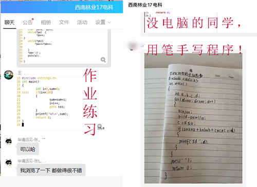 在(zai)學(xue)(xue)習過程(cheng)中,西南林業大學(xue)(xue)學(xue)(xue)校領導(dao)也(ye)不時進入(ru)直播間(jian),關心同學(xue)(xue)們的(de)(de)學(xue)(xue)習情況和(he)(he)進展,并給出相關的(de)(de)指導(dao)意見。空間(jian)的(de)(de)距離絲毫沒有影響小組成員間(jian)的(de)(de)合(he)作(zuo)和(he)(he)默契。密(mi)密(mi)麻(ma)麻(ma)的(de)(de)日(ri)志上,也(ye)承載著大家滿滿的(de)(de)收獲與喜(xi)悅!