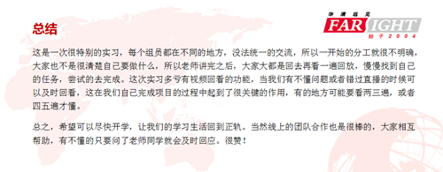 這(zhe)次的(de)實(shi)訓,西(xi)南(nan)林(lin)業大學(xue)電子科(ke)學(xue)與(yu)技術2017級的(de)學(xue)生們學(xue)習態度積(ji)極熱情,按時聽課,及時提交日(ri)志與(yu)作業,認(ren)真按照(zhao)老師的(de)要求去完成項目。通過此次在線實(shi)訓,學(xue)生一(yi)致認(ren)為收獲(huo)頗豐,為自己將來的(de)就業積(ji)累(lei)了(le)經(jing)驗,也樹立了(le)信心。
