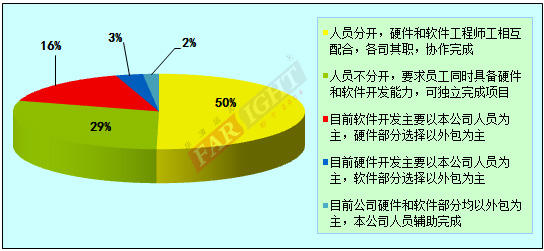 2012-2013年(nian)度的(de)(de)(de)調(diao)查數據(ju)(ju)顯示(shi),,有一(yi)半從(cong)事嵌(qian)(qian)入(ru)(ru)(ru)式(shi)(shi)產品研(yan)發(fa)(fa)的(de)(de)(de)企業都是(shi)采(cai)用軟(ruan)(ruan)(ruan)硬(ying)(ying)件人(ren)員(yuan)(yuan)分(fen)(fen)工合作完(wan)成產品的(de)(de)(de)開發(fa)(fa)方式(shi)(shi)(50%),與去年(nian)的(de)(de)(de)調(diao)查數據(ju)(ju)(62%)橫向(xiang)對比(bi)看(kan),這(zhe)一(yi)選項(xiang)所占的(de)(de)(de)比(bi)例也呈現出下降(jiang)(jiang)的(de)(de)(de)趨(qu)勢(下降(jiang)(jiang)了(le)12個(ge)(ge)百分(fen)(fen)點(dian))。而“人(ren)員(yuan)(yuan)不分(fen)(fen)開,要(yao)求員(yuan)(yuan)工同時具備硬(ying)(ying)件和(he)軟(ruan)(ruan)(ruan)件開發(fa)(fa)能力,可(ke)獨立完(wan)成項(xiang)目”的(de)(de)(de)公司所占比(bi)例,由去年(nian)的(de)(de)(de)22%上(shang)(shang)升(sheng)到今年(nian)的(de)(de)(de)29%(上(shang)(shang)升(sheng)了(le)7個(ge)(ge)百分(fen)(fen)點(dian))。從(cong)這(zhe)一(yi)轉變,我(wo)們(men)可(ke)以看(kan)到:嵌(qian)(qian)入(ru)(ru)(ru)式(shi)(shi)系(xi)統作為一(yi)個(ge)(ge)軟(ruan)(ruan)(ruan)硬(ying)(ying)件結合的(de)(de)(de)系(xi)統,需(xu)要(yao)嵌(qian)(qian)入(ru)(ru)(ru)式(shi)(shi)開發(fa)(fa)工程(cheng)師在軟(ruan)(ruan)(ruan)件和(he)硬(ying)(ying)件兩個(ge)(ge)方面都不斷深(shen)化(hua)學習(xi),同時具備軟(ruan)(ruan)(ruan)硬(ying)(ying)件開發(fa)(fa)能力的(de)(de)(de)工程(cheng)師,將在求職過(guo)程(cheng)中(zhong)擁有更多(duo)的(de)(de)(de)選擇機會以及(ji)更大(da)的(de)(de)(de)成長(chang)空間。同時,從(cong)各大(da)招聘網(wang)站的(de)(de)(de)新搜索(suo)數據(ju)(ju)中(zhong)也可(ke)以看(kan)出,目前(qian)嵌(qian)(qian)入(ru)(ru)(ru)式(shi)(shi)軟(ruan)(ruan)(ruan)件開發(fa)(fa)人(ren)才(cai)(cai)(cai)的(de)(de)(de)需(xu)求量(liang)遠遠大(da)于純硬(ying)(ying)件開發(fa)(fa)人(ren)才(cai)(cai)(cai),嵌(qian)(qian)入(ru)(ru)(ru)式(shi)(shi)系(xi)統項(xiang)目研(yan)發(fa)(fa)差不多(duo)80%以上(shang)(shang)的(de)(de)(de)工作量(liang)都是(shi)在軟(ruan)(ruan)(ruan)件部分(fen)(fen),軟(ruan)(ruan)(ruan)件是(shi)嵌(qian)(qian)入(ru)(ru)(ru)式(shi)(shi)系(xi)統核(he)心的(de)(de)(de)部分(fen)(fen),也是(shi)體(ti)現嵌(qian)(qian)入(ru)(ru)(ru)式(shi)(shi)系(xi)統優勢的(de)(de)(de)關鍵部分(fen)(fen),企業對嵌(qian)(qian)入(ru)(ru)(ru)式(shi)(shi)軟(ruan)(ruan)(ruan)件開發(fa)(fa)人(ren)才(cai)(cai)(cai)的(de)(de)(de)需(xu)求必將持續上(shang)(shang)漲。