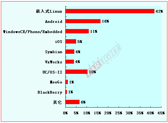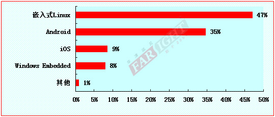 在(zai)本(ben)年(nian)度新(xin)增(zeng)調研項目中(zhong)新(xin)增(zeng)了對未來(lai)1-2年(nian)內嵌(qian)(qian)入(ru)(ru)式(shi)行業會(hui)占(zhan)主導(dao)地位的(de)(de)嵌(qian)(qian)入(ru)(ru)式(shi)操作(zuo)系(xi)統(tong)的(de)(de)調查(cha)(cha),調查(cha)(cha)統(tong)計數據顯示,嵌(qian)(qian)入(ru)(ru)式(shi)Linux仍然是(shi)未來(lai)幾年(nian)內,嵌(qian)(qian)入(ru)(ru)式(shi)工程師認可(ke)的(de)(de)具(ju)發展潛力(li)的(de)(de)首選嵌(qian)(qian)入(ru)(ru)式(shi)操作(zuo)系(xi)統(tong),所(suo)占(zhan)比例接近一半(47%),而Android智能手(shou)機操作(zuo)系(xi)統(tong),也(ye)受(shou)到了越來(lai)越多嵌(qian)(qian)入(ru)(ru)式(shi)工程師的(de)(de)關注(zhu),并(bing)對其(qi)在(zai)移(yi)動手(shou)機操作(zuo)系(xi)統(tong)中(zhong)廣闊的(de)(de)發展空間及發展潛力(li)充滿了期待。由此(ci)可(ke)見,作(zuo)為(wei)開源系(xi)列的(de)(de)兩款優(you)秀的(de)(de)嵌(qian)(qian)入(ru)(ru)式(shi)操作(zuo)系(xi)統(tong)(嵌(qian)(qian)入(ru)(ru)式(shi)Linux及Android),其(qi)開源的(de)(de)特(te)性,無疑使其(qi)在(zai)市場競(jing)爭中(zhong),具(ju)備了強大的(de)(de)競(jing)爭優(you)勢及用(yong)戶(hu)基礎,用(yong)戶(hu)就(jiu)是(shi)王道。