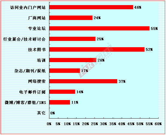 來自2012-2013年(nian)度(du)的(de)調(diao)查數據顯(xian)示(shi),“專業(ye)論壇、技術(shu)圖(tu)書、訪問(wen)(wen)業(ye)內(nei)門戶網(wang)(wang)站(zhan)、網(wang)(wang)絡搜索”依(yi)然是(shi)嵌入式(shi)工(gong)(gong)程(cheng)(cheng)師(shi)(shi)獲(huo)(huo)取(qu)知(zhi)識的(de)幾(ji)個主(zhu)要途徑(jing),在參與調(diao)研的(de)所(suo)有嵌入式(shi)工(gong)(gong)程(cheng)(cheng)師(shi)(shi)中,有55%的(de)人(ren)會(hui)瀏覽專業(ye)論壇交(jiao)流(liu)(liu),52%的(de)人(ren)會(hui)通(tong)過技術(shu)圖(tu)書學(xue)(xue)習,46%的(de)人(ren)會(hui)通(tong)過訪問(wen)(wen)業(ye)內(nei)門戶網(wang)(wang)站(zhan)獲(huo)(huo)取(qu)新行業(ye)資(zi)訊(xun),37%的(de)人(ren)會(hui)通(tong)過網(wang)(wang)絡搜索獲(huo)(huo)取(qu)針對(dui)性問(wen)(wen)題的(de)相關知(zhi)識。除(chu)了以上4大主(zhu)要的(de)途徑(jing)之外,部分工(gong)(gong)程(cheng)(cheng)師(shi)(shi)也會(hui)通(tong)過專業(ye)技能培訓、廠商網(wang)(wang)站(zhan)、行業(ye)展會(hui)/技術(shu)研討會(hui)、微博/博客/群組(zu)、雜志(zhi)/期刊/報紙、電(dian)(dian)子郵件訂(ding)閱(yue)、微博/博客/群組(zu)/SNS社區等(deng)途徑(jing)獲(huo)(huo)取(qu)信息。從2004年(nian)至今,華(hua)(hua)清遠見對(dui)外公開提供的(de)免費電(dian)(dian)子圖(tu)書、視(shi)頻教程(cheng)(cheng)等(deng)資(zi)料每(mei)年(nian)平均下(xia)載(zai)次數已達到15萬之多,特(te)別是(shi)2013年(nian)推出的(de)華(hua)(hua)清遠見10年(nian)特(te)獻電(dian)(dian)子書贈送活動,更是(shi)受到了眾多嵌入式(shi)愛好者的(de)熱(re)烈(lie)歡迎,圖(tu)書訂(ding)閱(yue)索取(qu)量激增(zeng),這也可以從另(ling)一個側面反映出業(ye)內(nei)工(gong)(gong)程(cheng)(cheng)師(shi)(shi)的(de)旺盛(sheng)的(de)學(xue)(xue)習需求和主(zhu)流(liu)(liu)的(de)學(xue)(xue)習方(fang)式(shi)。