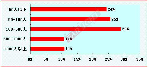 從(cong)“公司規模(mo)”調查項(xiang)的(de)(de)(de)統計(ji)結(jie)果可以看(kan)出(chu),100人以內的(de)(de)(de)小型公司所占比例(li)為(wei)(wei)49%,基本(ben)上接(jie)近一半,100-500人的(de)(de)(de)中型公司所占比例(li)為(wei)(wei)29%,這(zhe)和傳(chuan)統的(de)(de)(de)IT企(qi)業(ye)規模(mo)構成差(cha)別(bie)還是比較大,這(zhe)恰恰說明了嵌入式(shi)系(xi)統充分結(jie)合(he)行(xing)業(ye)應(ying)用、具有(you)靈活定制(zhi)性(xing)的(de)(de)(de)特點。嵌入式(shi)系(xi)統應(ying)用領(ling)域(yu)非常廣泛,在(zai)(zai)每個(ge)典型的(de)(de)(de)應(ying)用領(ling)域(yu)內都要(yao)求(qiu)企(qi)業(ye)具備一定的(de)(de)(de)專(zhuan)注(zhu)性(xing)和專(zhuan)業(ye)性(xing),這(zhe)與(yu)傳(chuan)統的(de)(de)(de)IT行(xing)業(ye)經常會在(zai)(zai)某個(ge)領(ling)域(yu)內出(chu)現壟斷的(de)(de)(de)大型企(qi)業(ye)的(de)(de)(de)局面有(you)所不同(tong)。