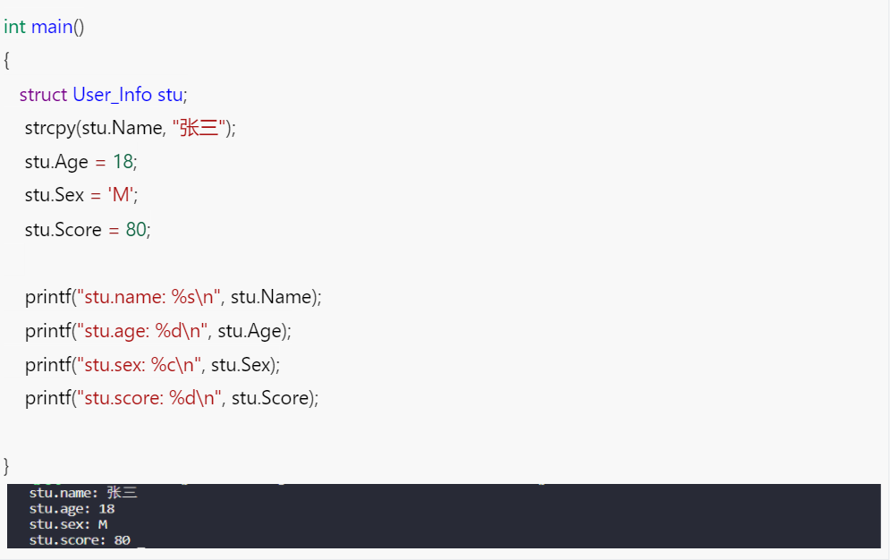 使用結構體(Stu_Info)定義結構體變量(stu)并使用,示例如下: